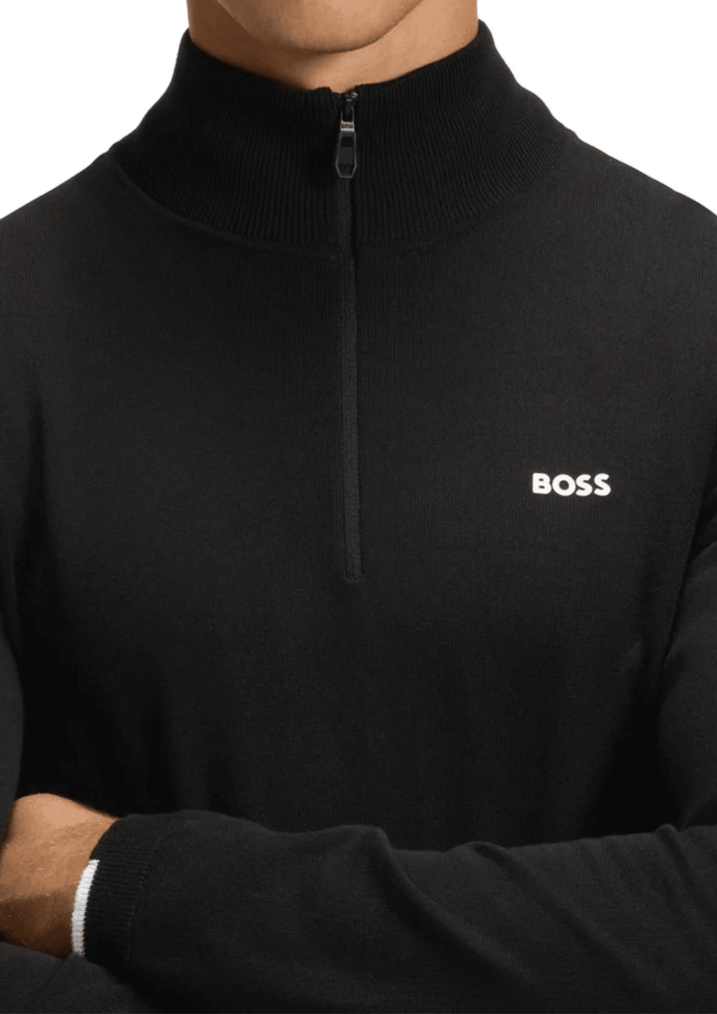 סוודר לגברים מבית BOSS, בגוון שחור קלאסי.