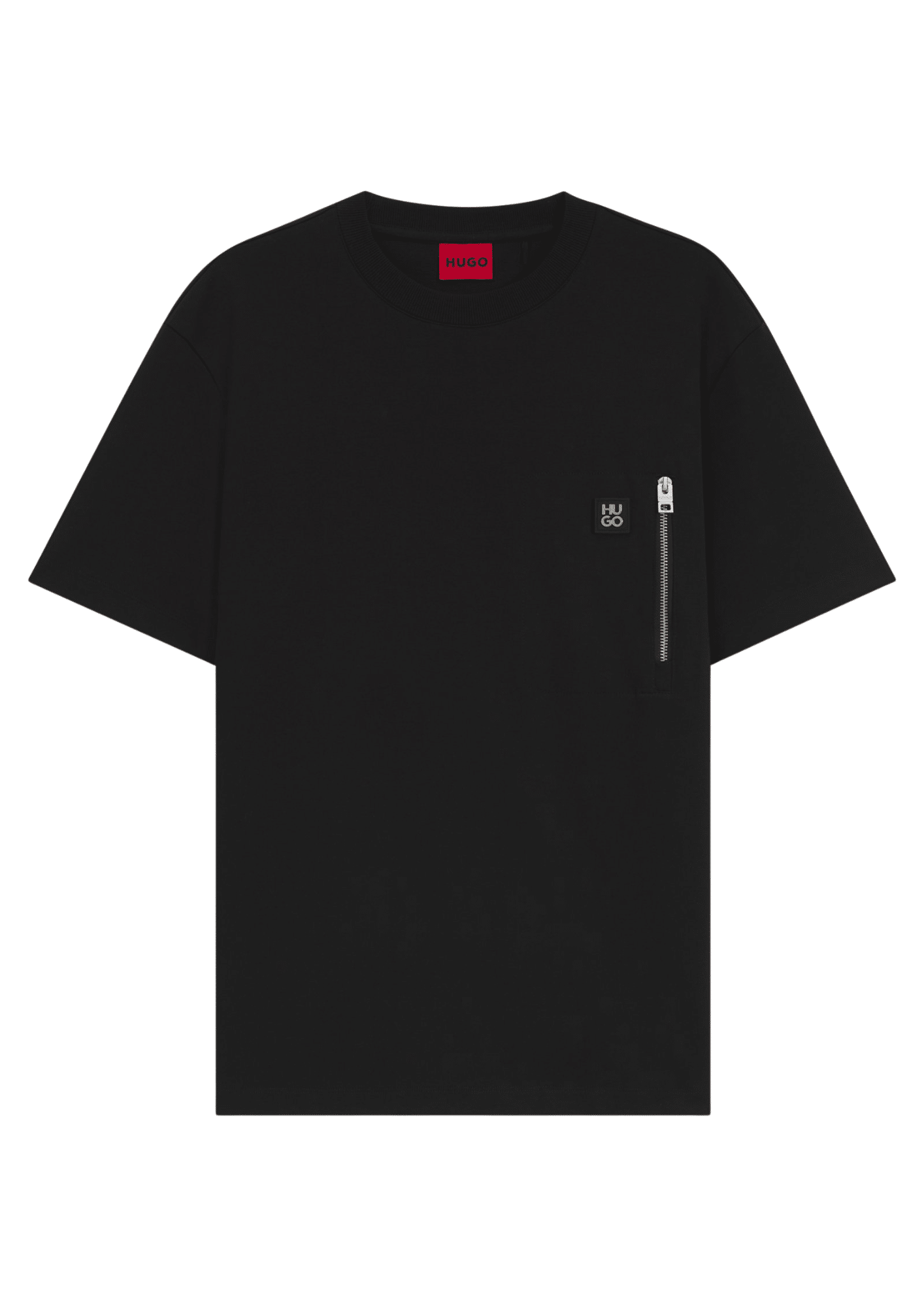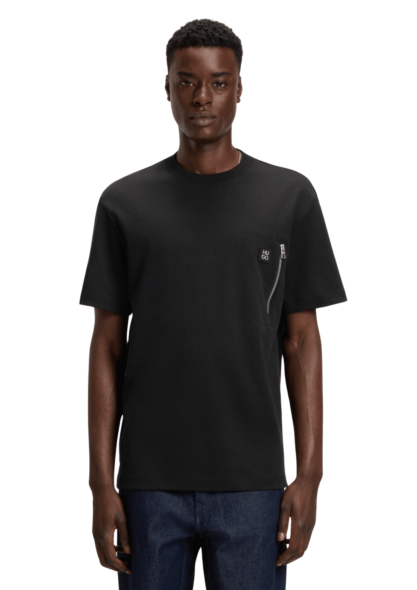 חולצת טי לגברים מבית HUGO בעיצוב מודרני ונקי עם טוויסט ייחודי של כיס צד עם רוכסן.