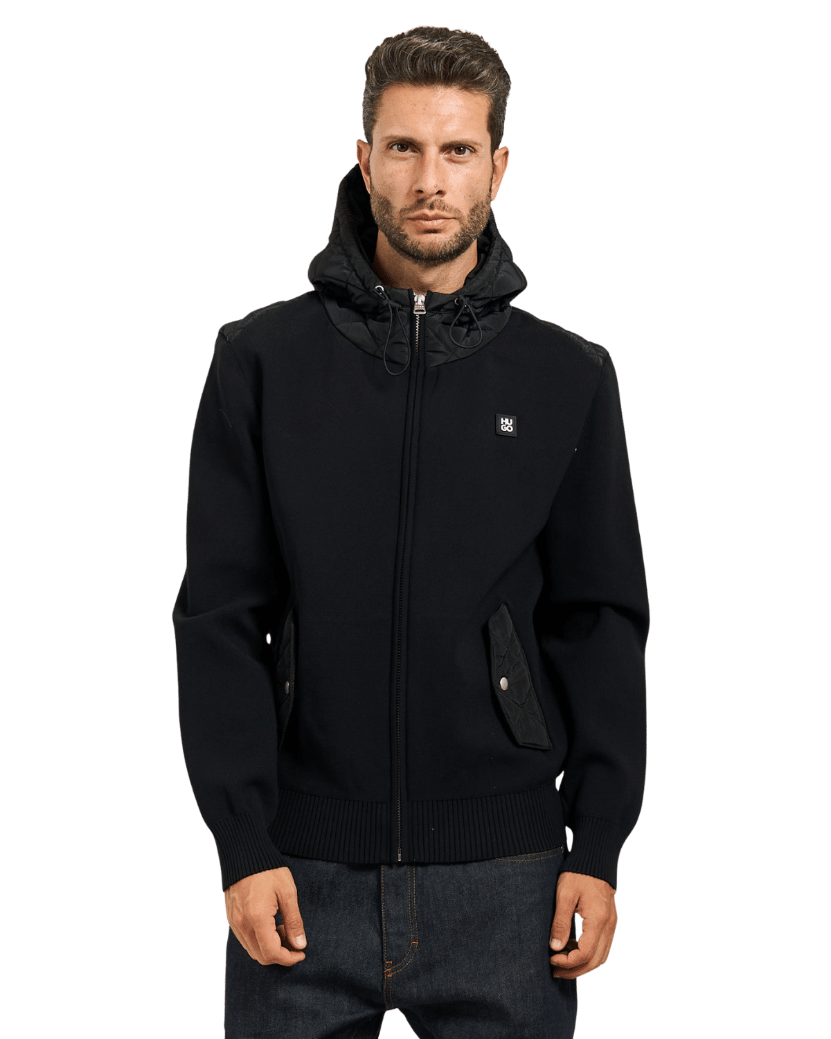 כיסים צדדיים עם כיסוי וולקרו, ולוגו HUGO קטן על החזה.