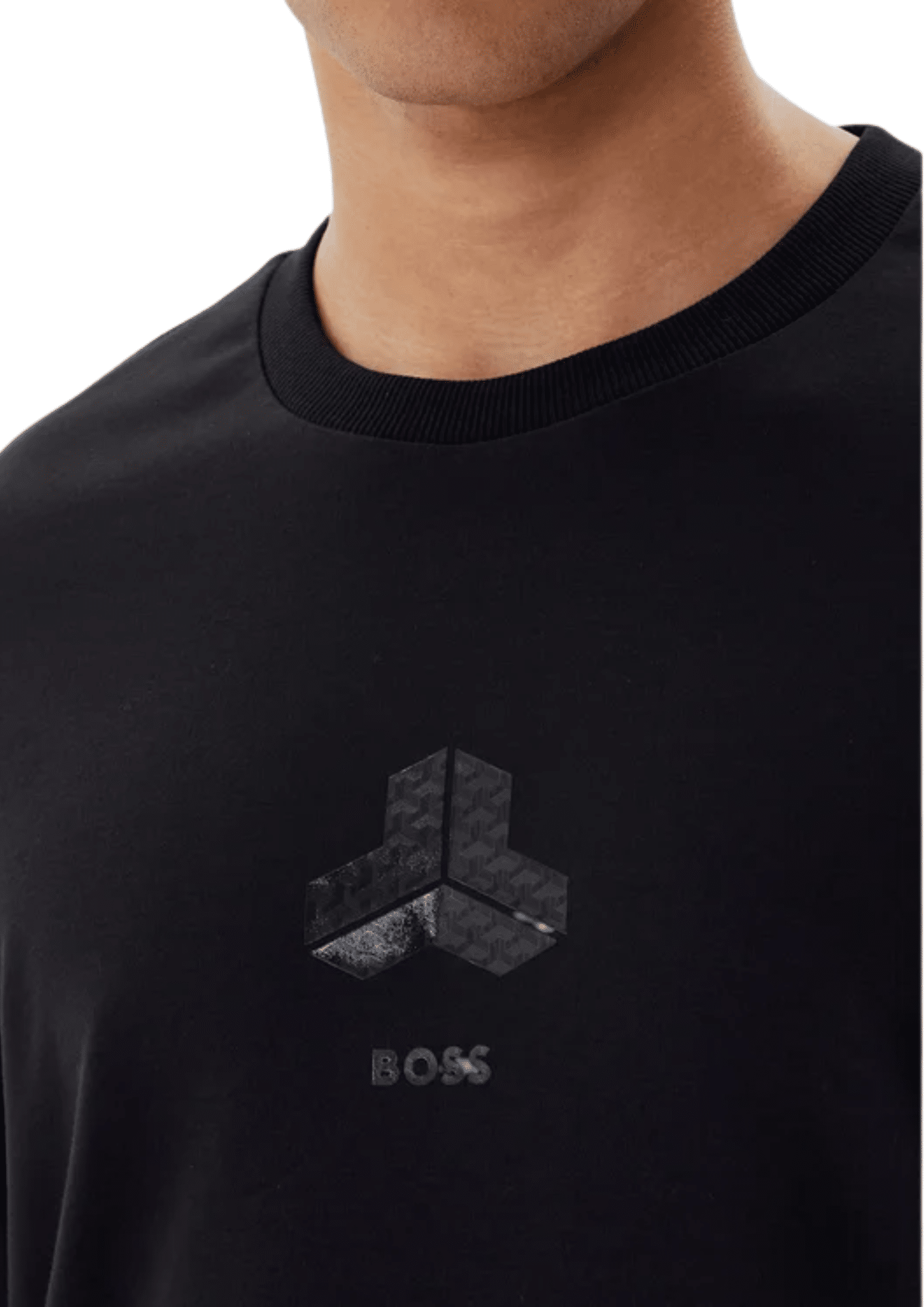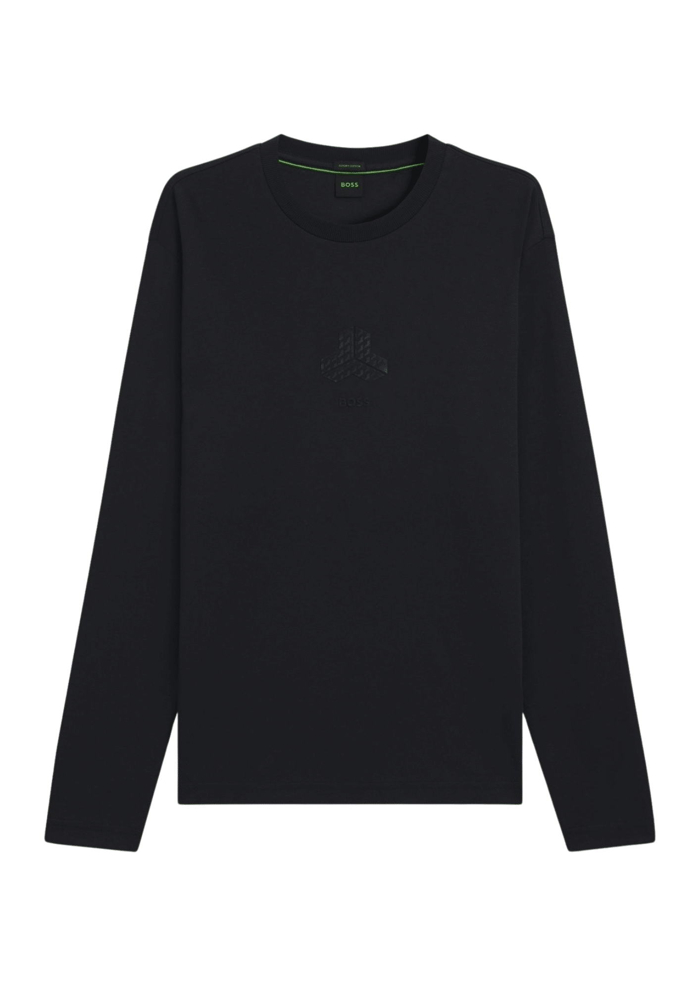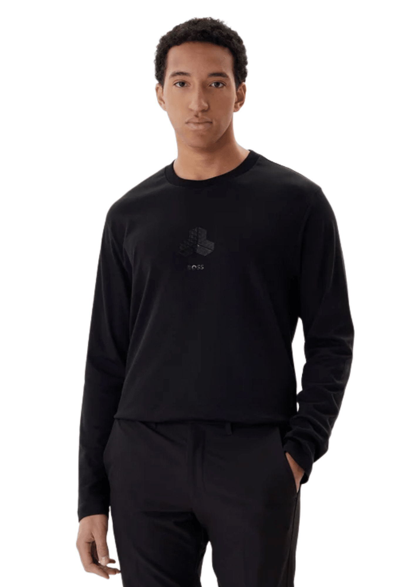 חולצת שרוול ארוך לגברים מבית BOSS בגוון שחור בגזרה משוחררת (Relaxed Fit).