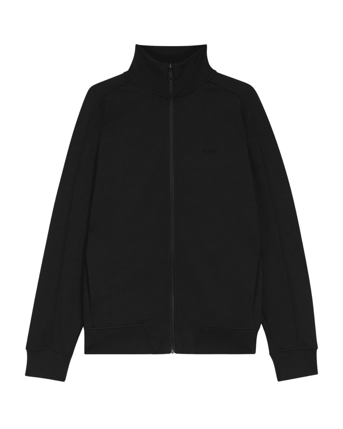 הצווארון עומד בעיצוב קל, השרוולים והחיפויים בתפירה שטוחה להדגשת המראה החלק והמאוזן.
