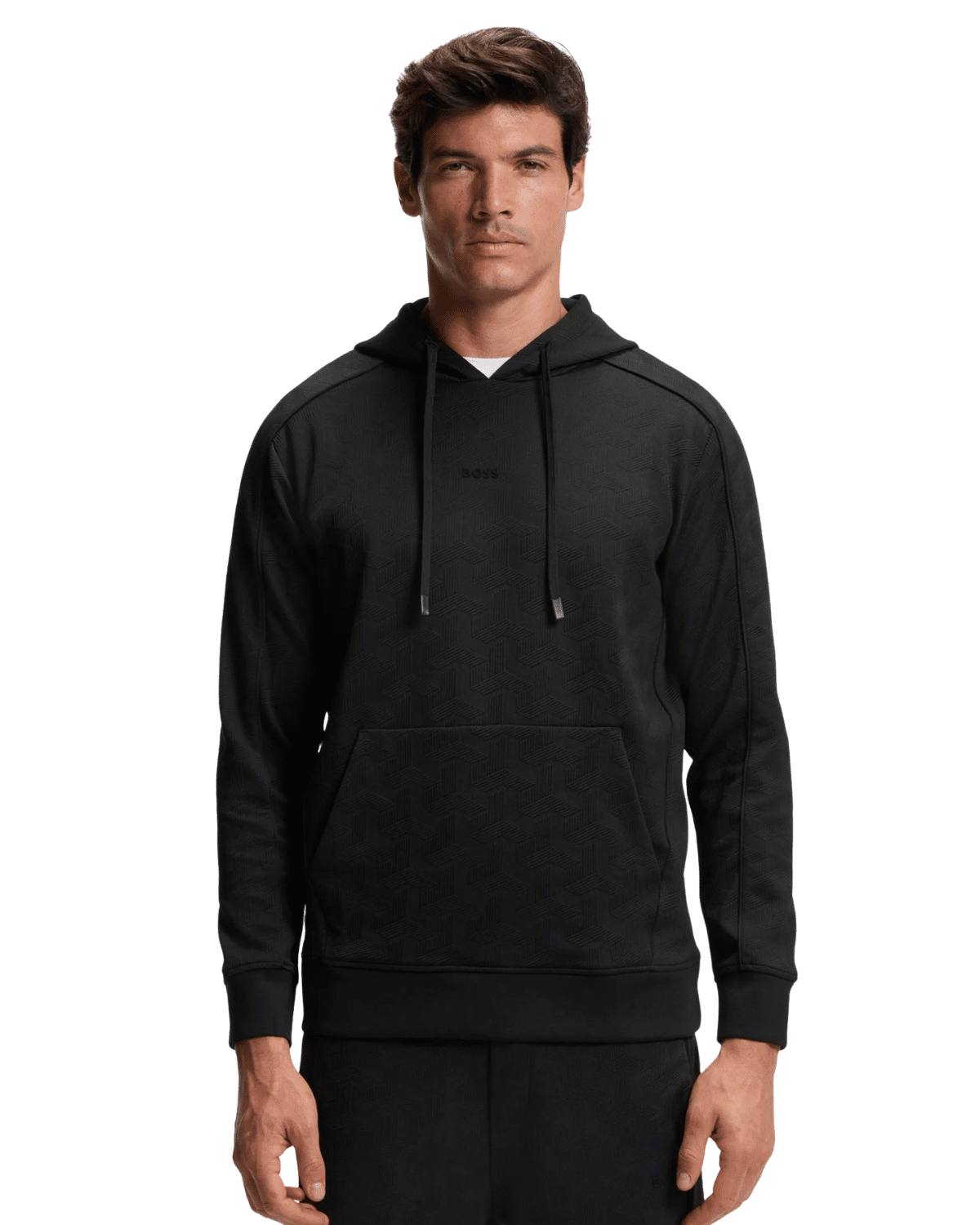 סוודר-קפוצ’ון לגברים מבית BOSS, בגוון שחור קלאסי.