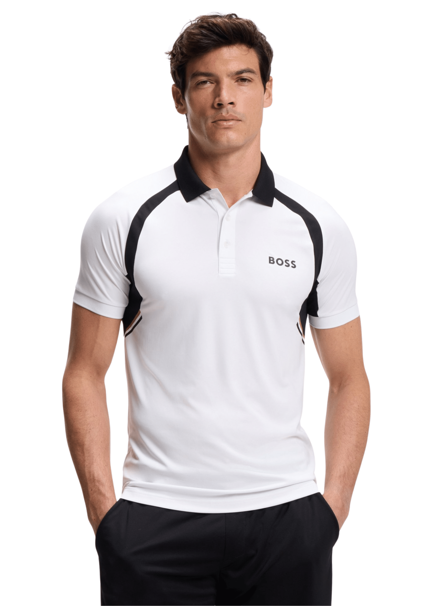 עם חלקי תוספת מנוגדים ופרט לוגו, חולצת פולו צמודה לגברים מבית BOSS משלבת סטייל ופונקציונליות.