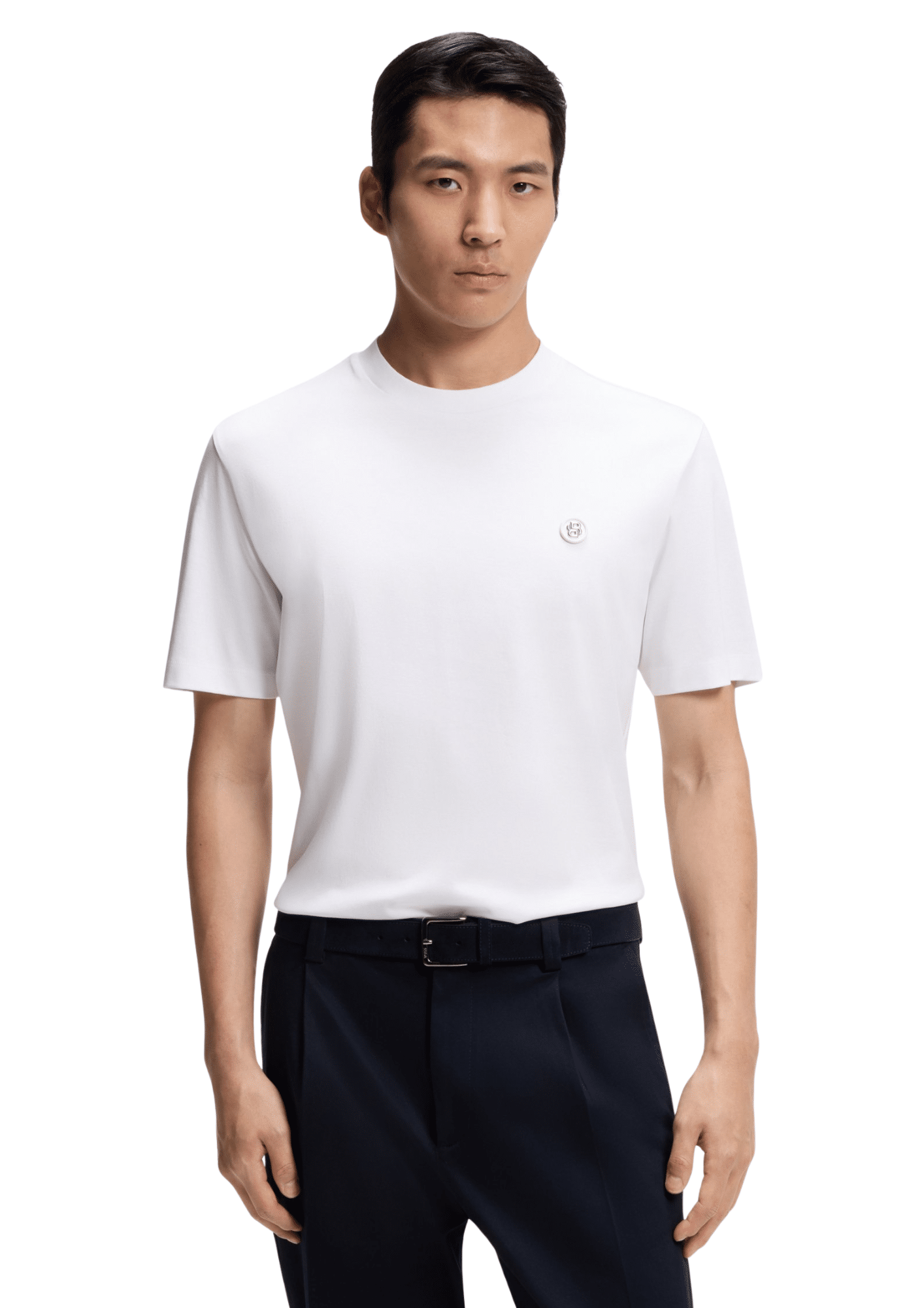 חולצת טי-שירט לגברים מבית HUGO BOSS עשויה כותנה מרסירייז בלוגו Double B בדגש חזיתי שמעניק טוויסט אופנתי נקי ומעודן.