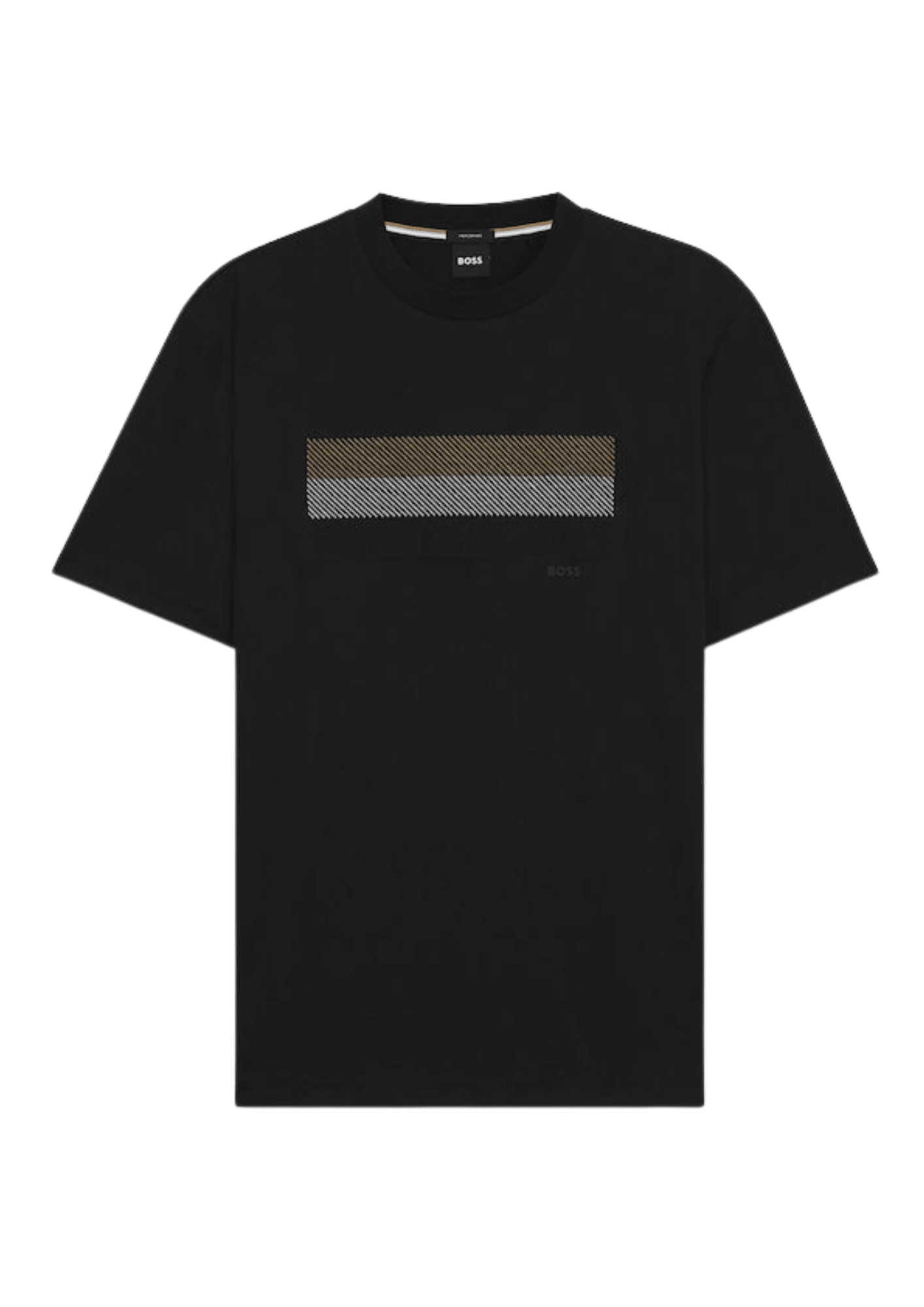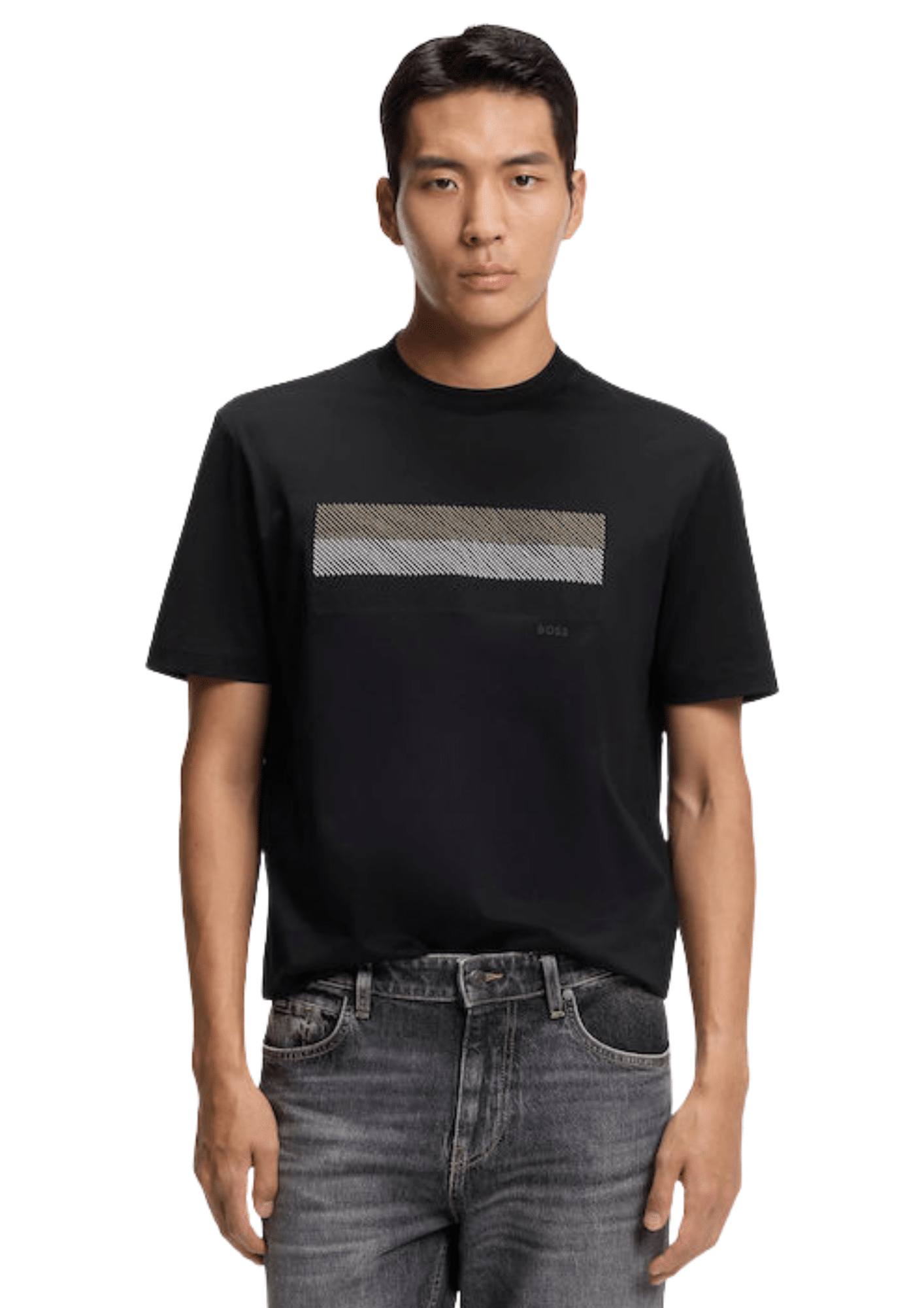 חולצת טי-שירט לגברים מבית HUGO BOSS בעיצוב Regular Fit עם הדפס פסי גרפיקה אופנתי.