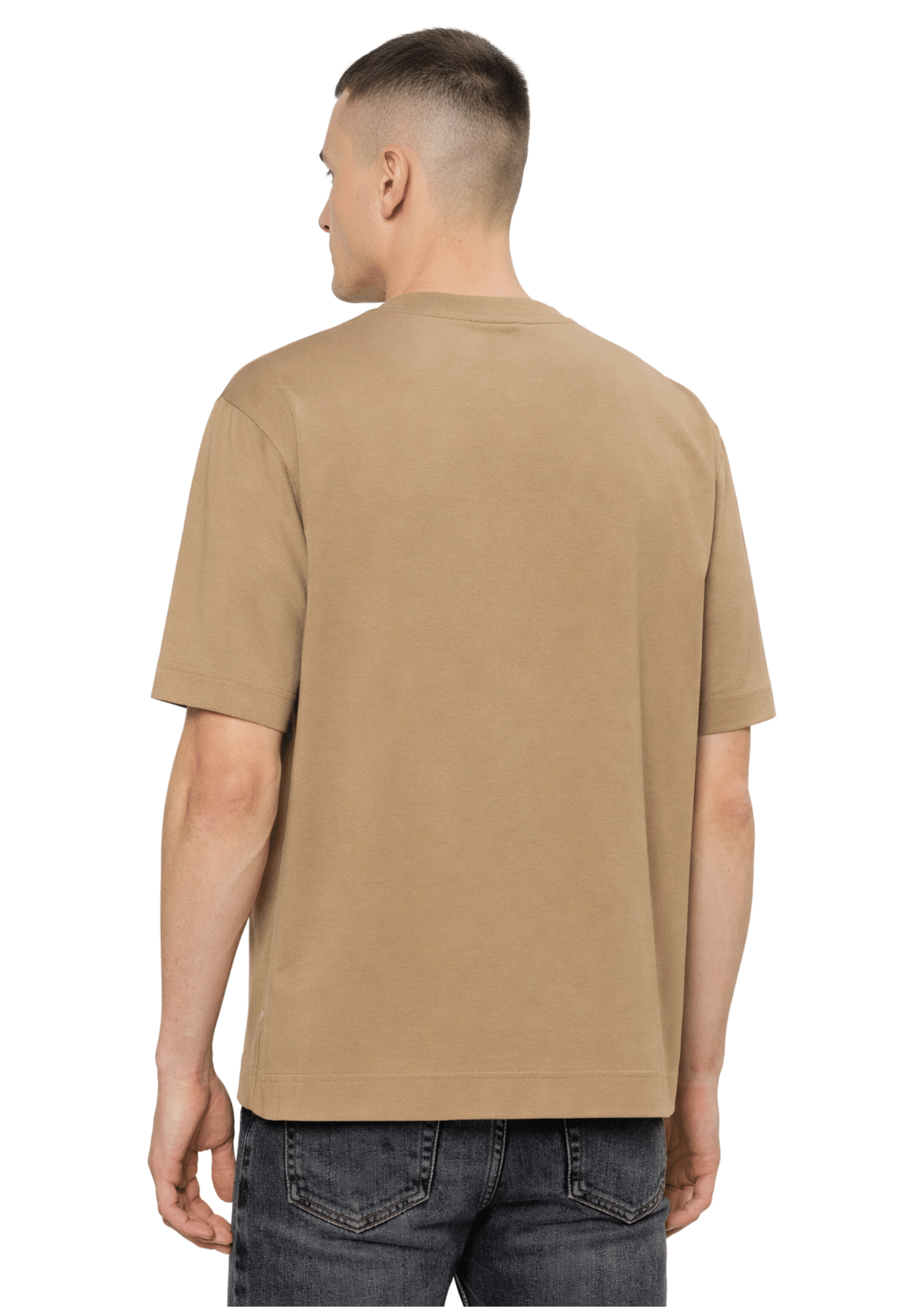 חולצת טי-שירט קצרה לגברים מבית HUGO BOSS בצבע חום קלאסי, שרוולים קצרים, פריט בסיסי יומיומי שמעניק מראה נקי ומעודן.