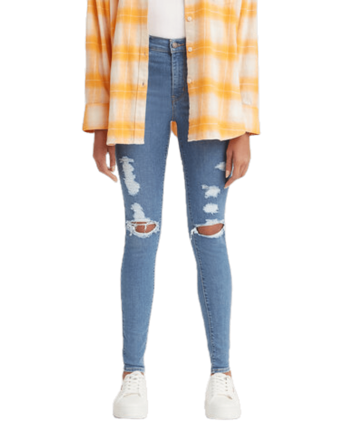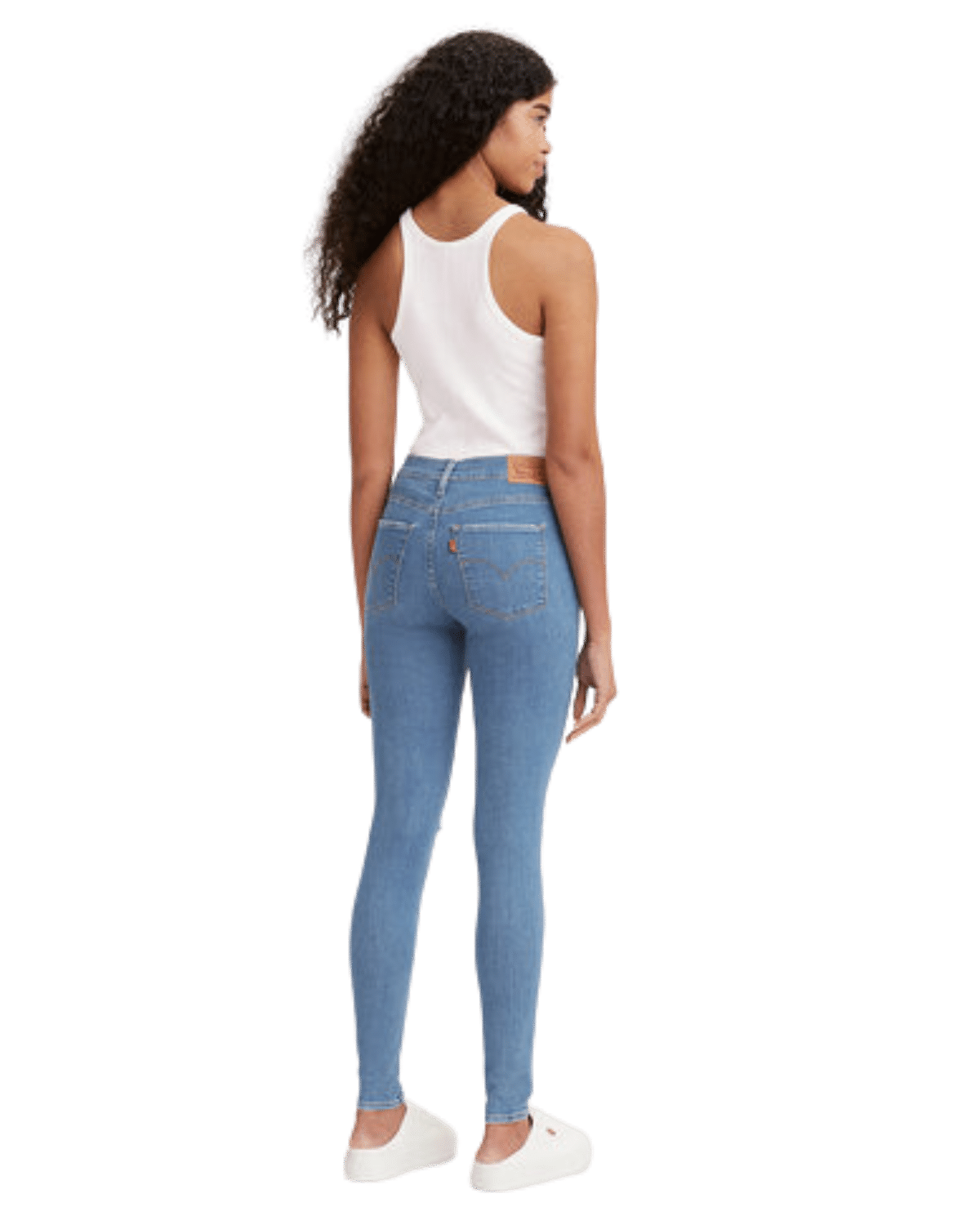 ג׳ינס סופר סקיני בגזרה גבוהה בצבע כחול.