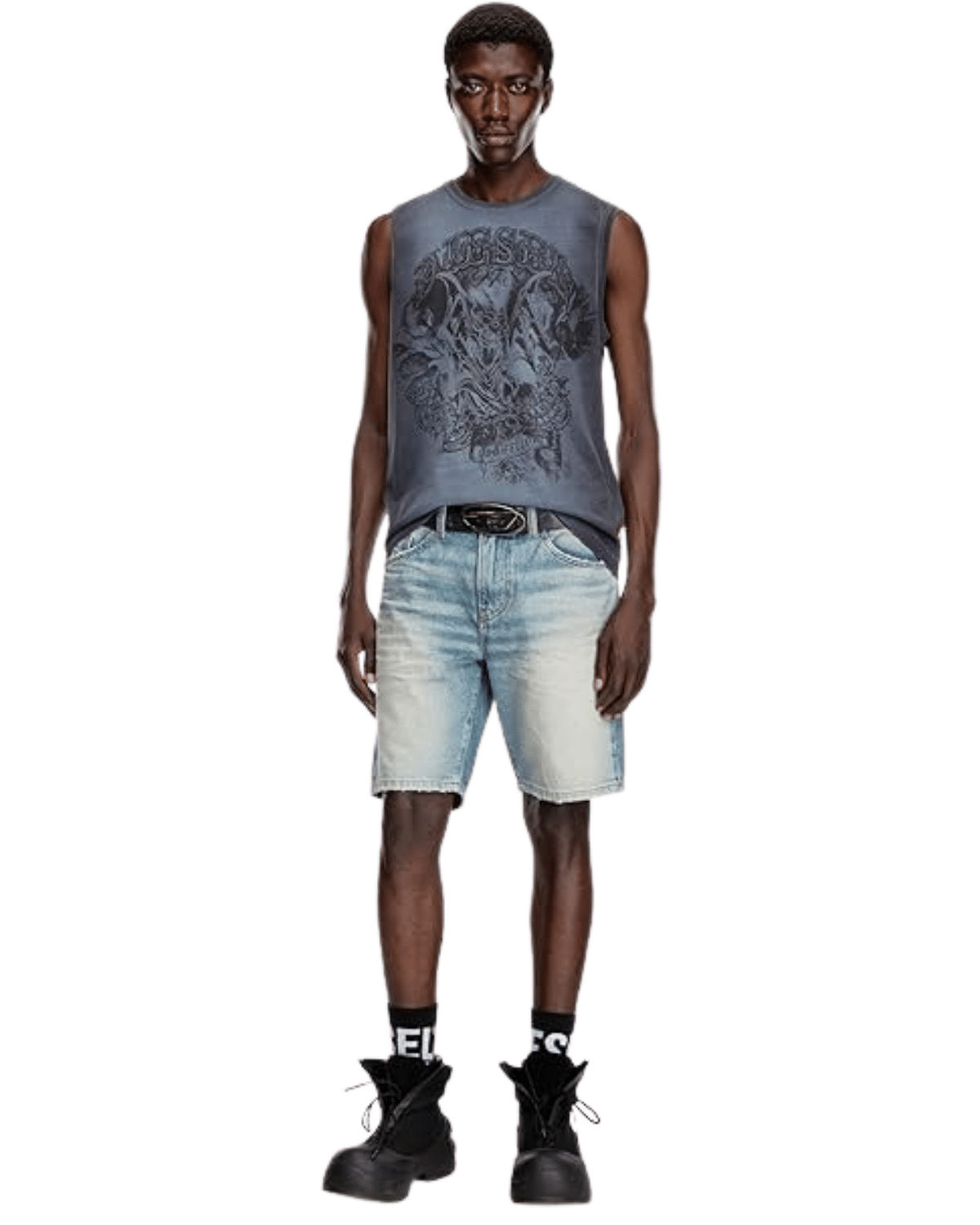 מכנסיים קצרים ג’ינס בסגנון עירוני, בגזרה צרה ואלגנטית שתוחם את המראה על הגוף בצורה מחמיאה.
