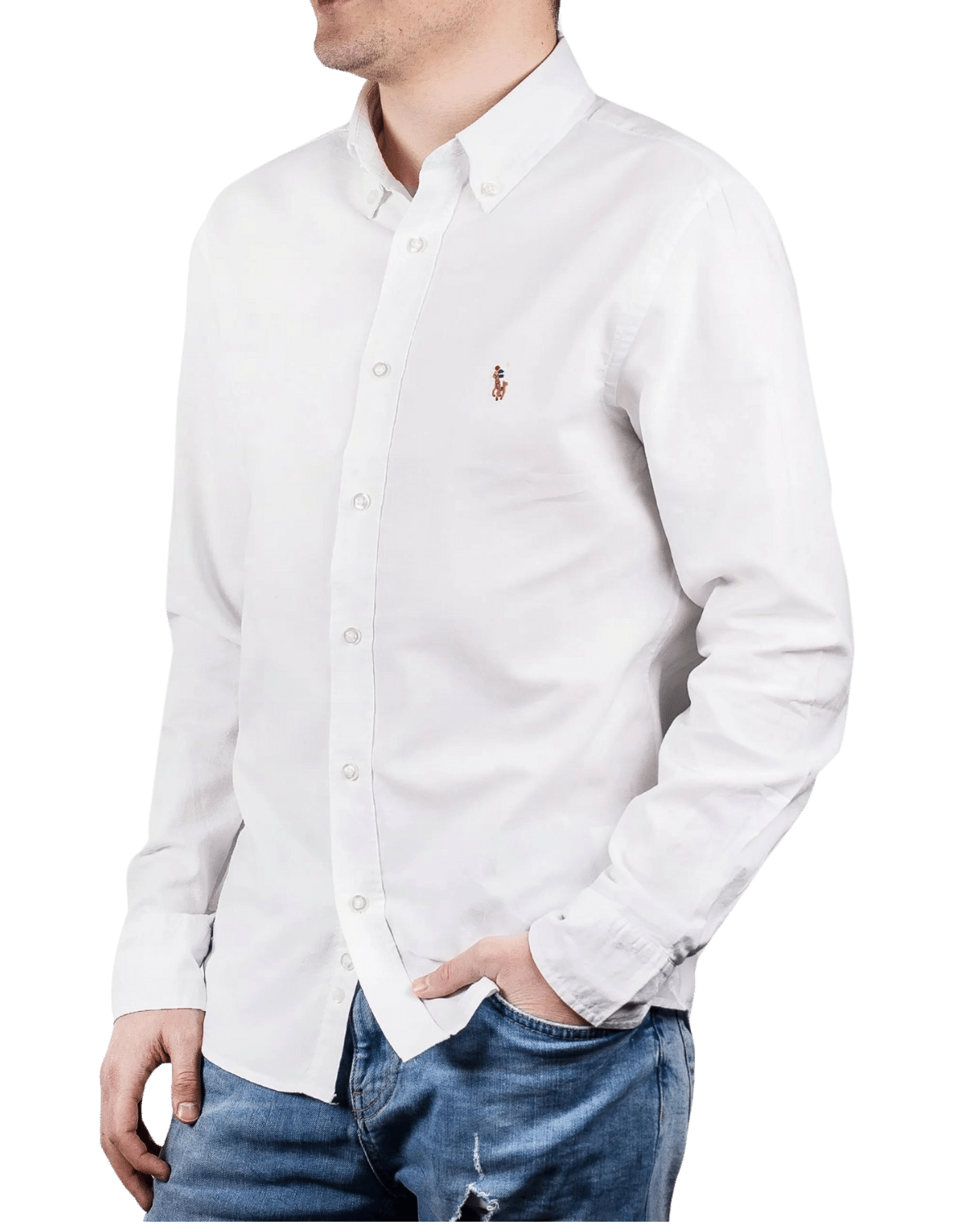 חולצת גברים גזרה – Slim fit, שרוול ארוך מהודקת עם כפתורים, עם לוגו רקום על החזה השמאלי,