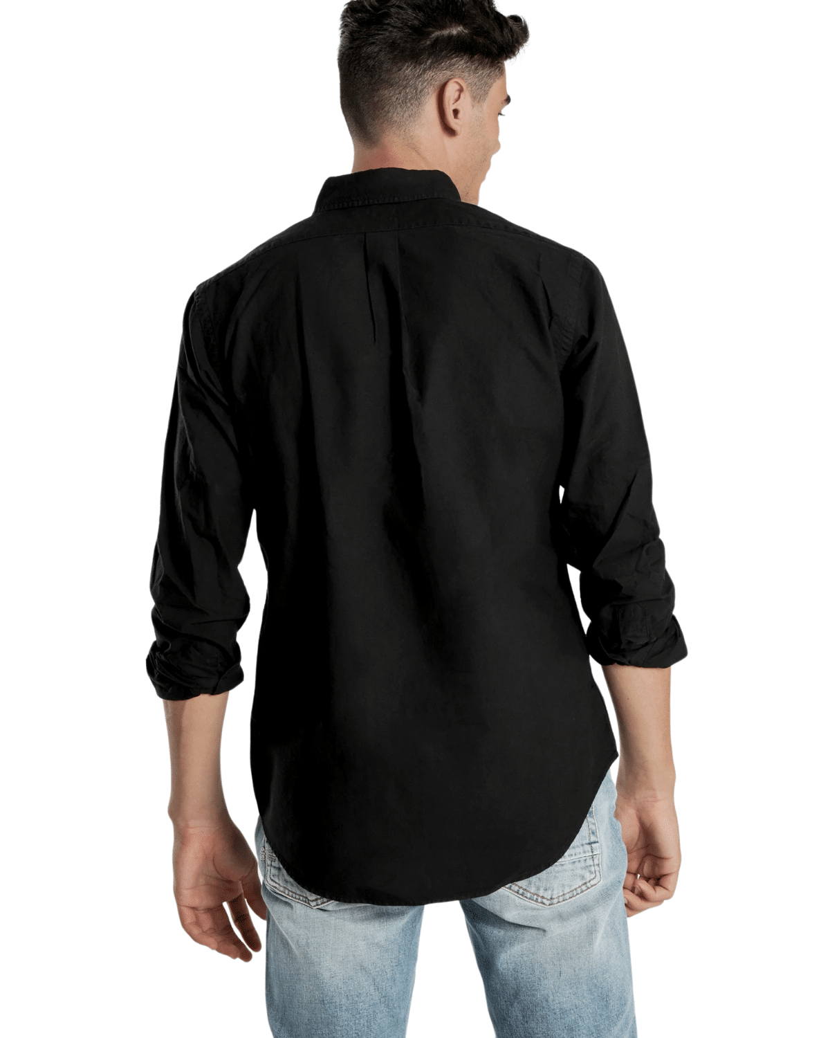 חולצת אוקספורד מכופתרת אלגנטית בצבע שחור.