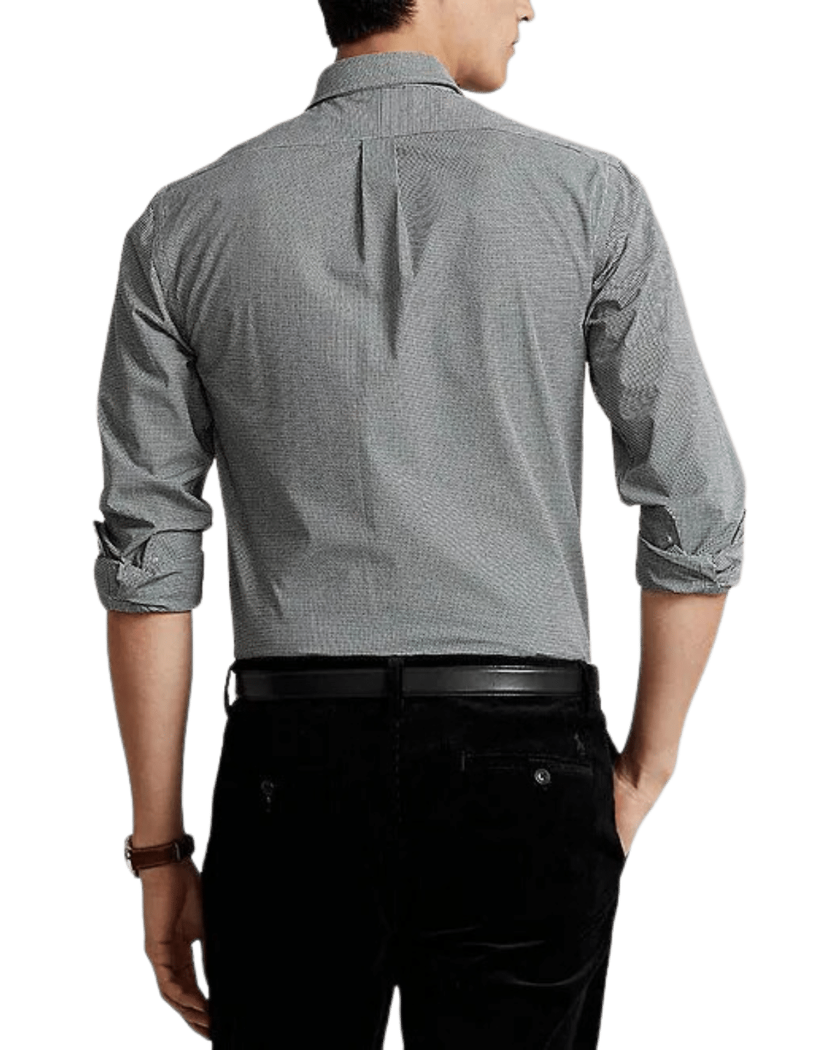 חולצה מכופתרת אלגנטית משובצת בגוונים אפור שחור לבן.