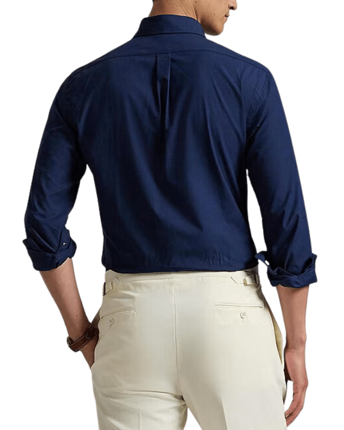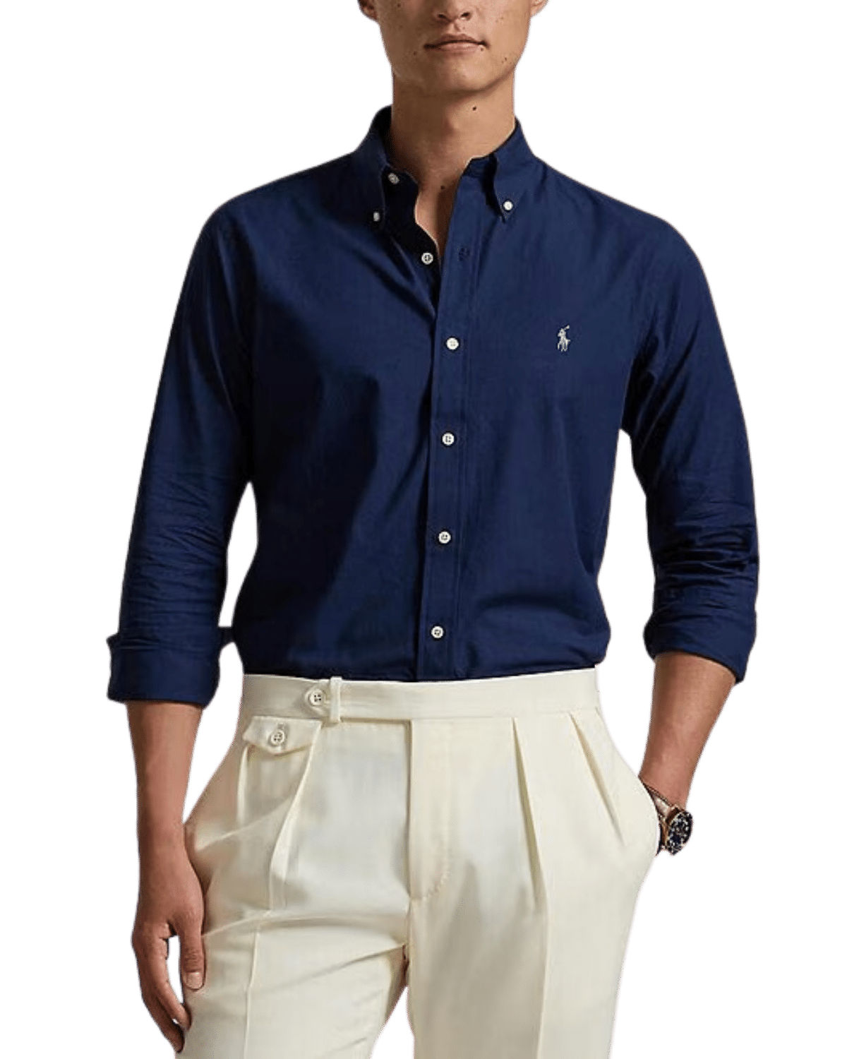 חולצת גברים גזרה קלאסית , שרוול ארוך מהודקת עם כפתורים, עם לוגו רקום על החזה השמאלי,