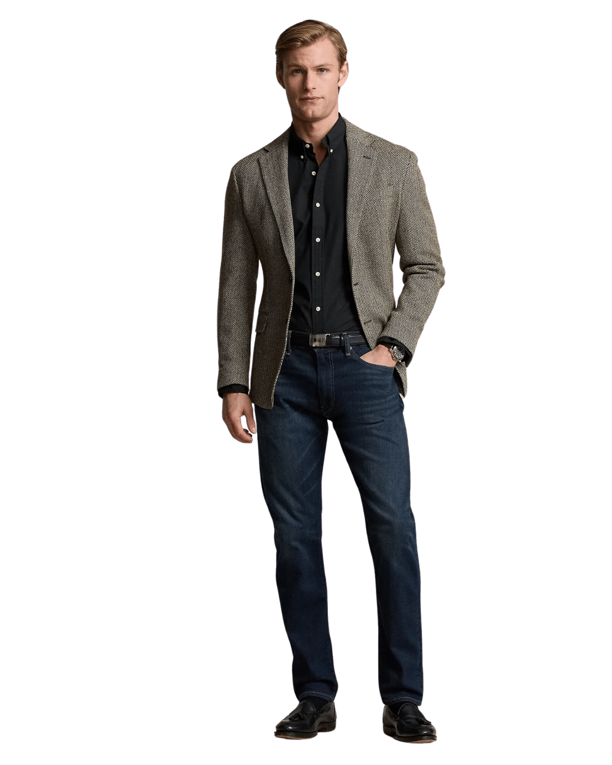 הגזרה המחויטת (classic fit)  צמודה לגוף מדגישה את קווי הגוף בצורה מחמיאה, בעוד הצווארון המכופתר והכפתורים בחזית מוסיפים למראה המסודר והיוקרתי.