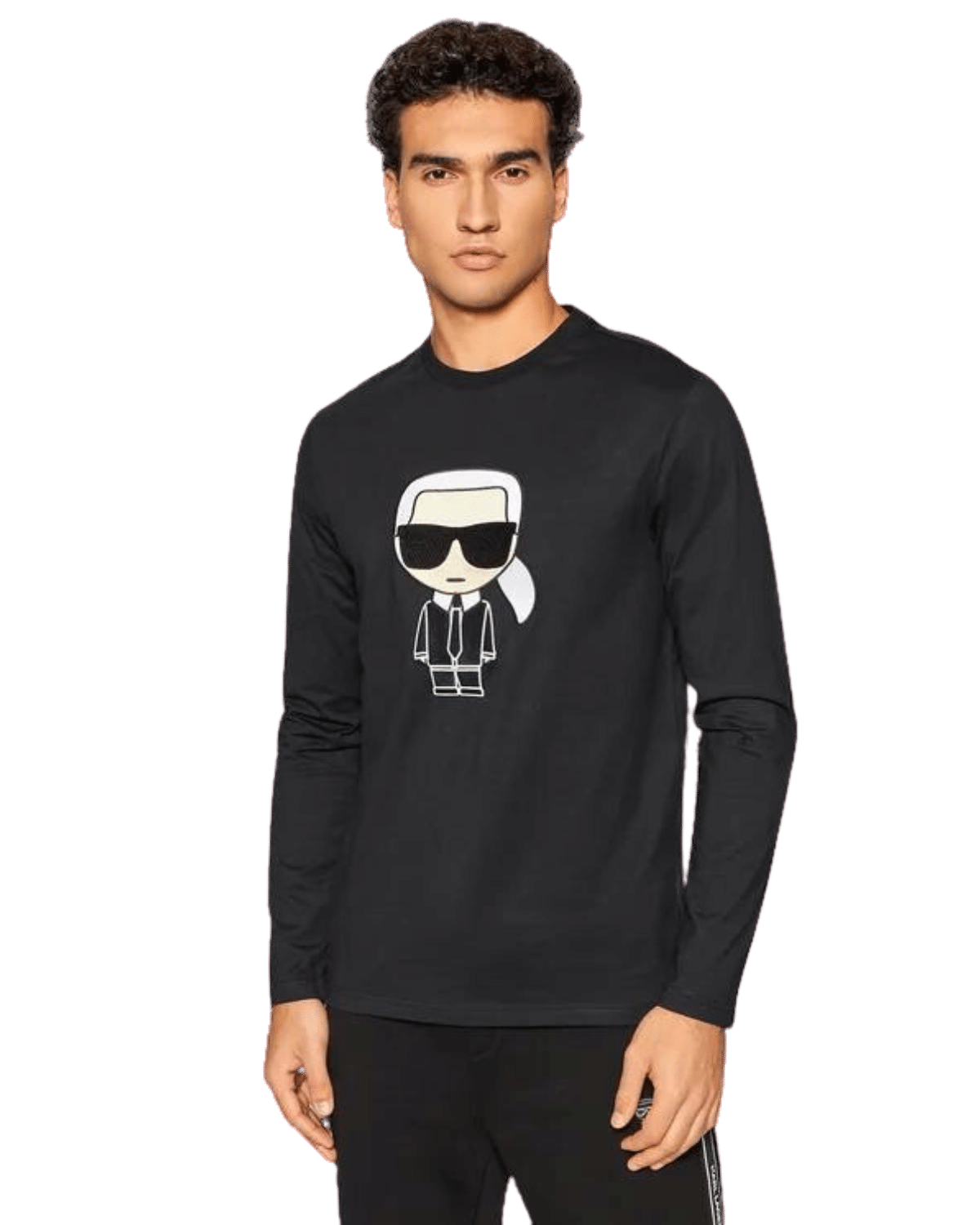 חולצת טי שירט שרוול ארוך עם לוגו ארוג ענק