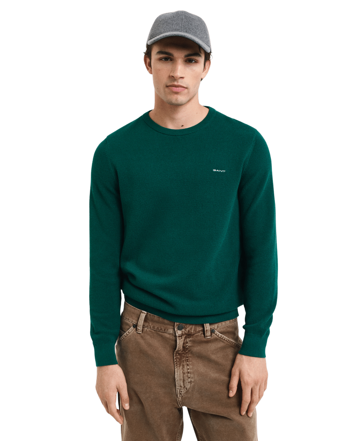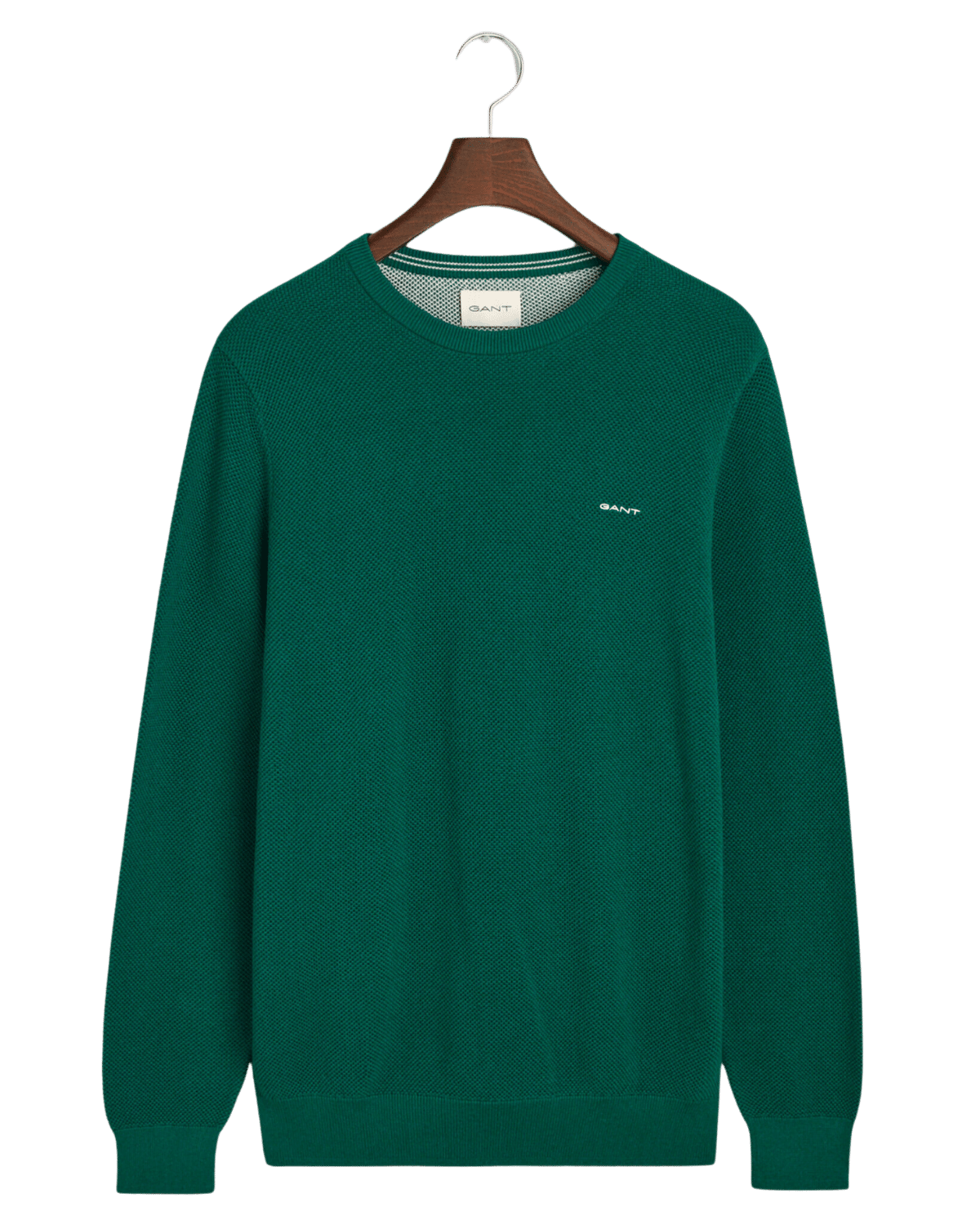 סריג גברים קלאסי מבית GANT, עשוי 100% כותנת פיקה אוורירית ואיכותית, עם צווארון עגול בסגנון Crew Neck.
