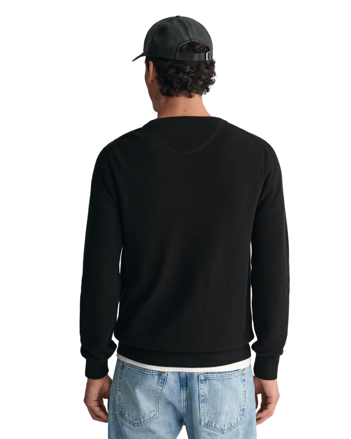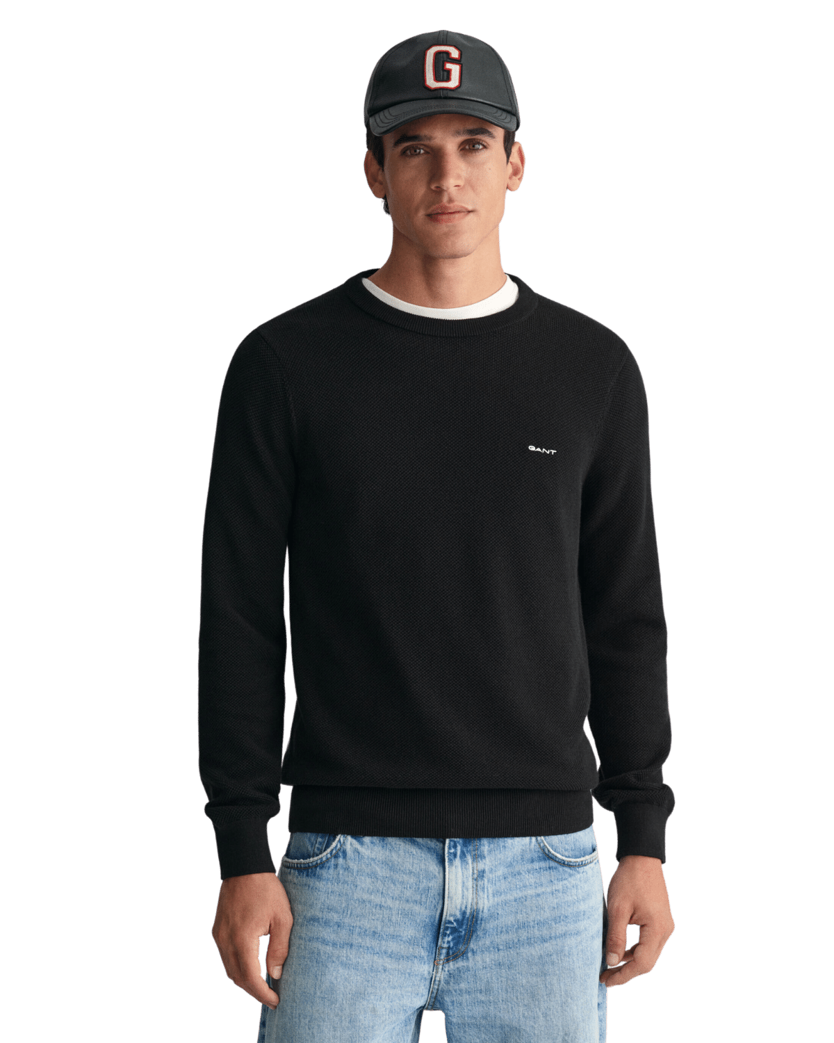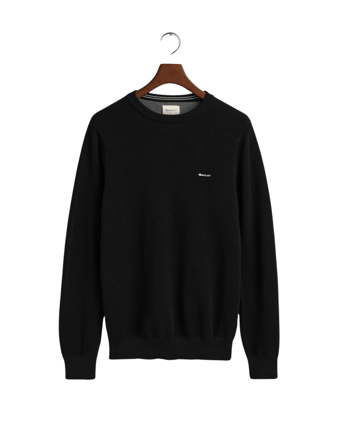 עיצוב נקי עם צווארון עגול וסמל רקום קטן בחזה מעניקים למראה תחושת יוקרה רגועה ואלגנטית.
