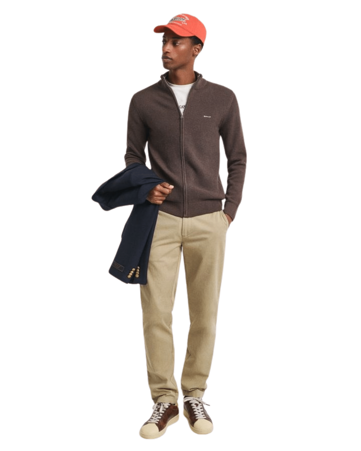 קרדיגן קלאסי לגברים בעיצוב אלגנטי ונקי, עשוי מבד פיקה כותנה איכותי ונושם.
