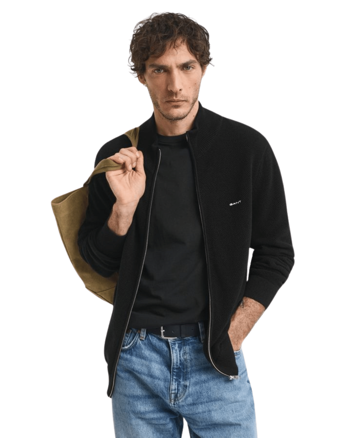קרדיגן קלאסי לגברים בעיצוב אלגנטי ונקי, עשוי מבד פיקה כותנה איכותי ונושם.