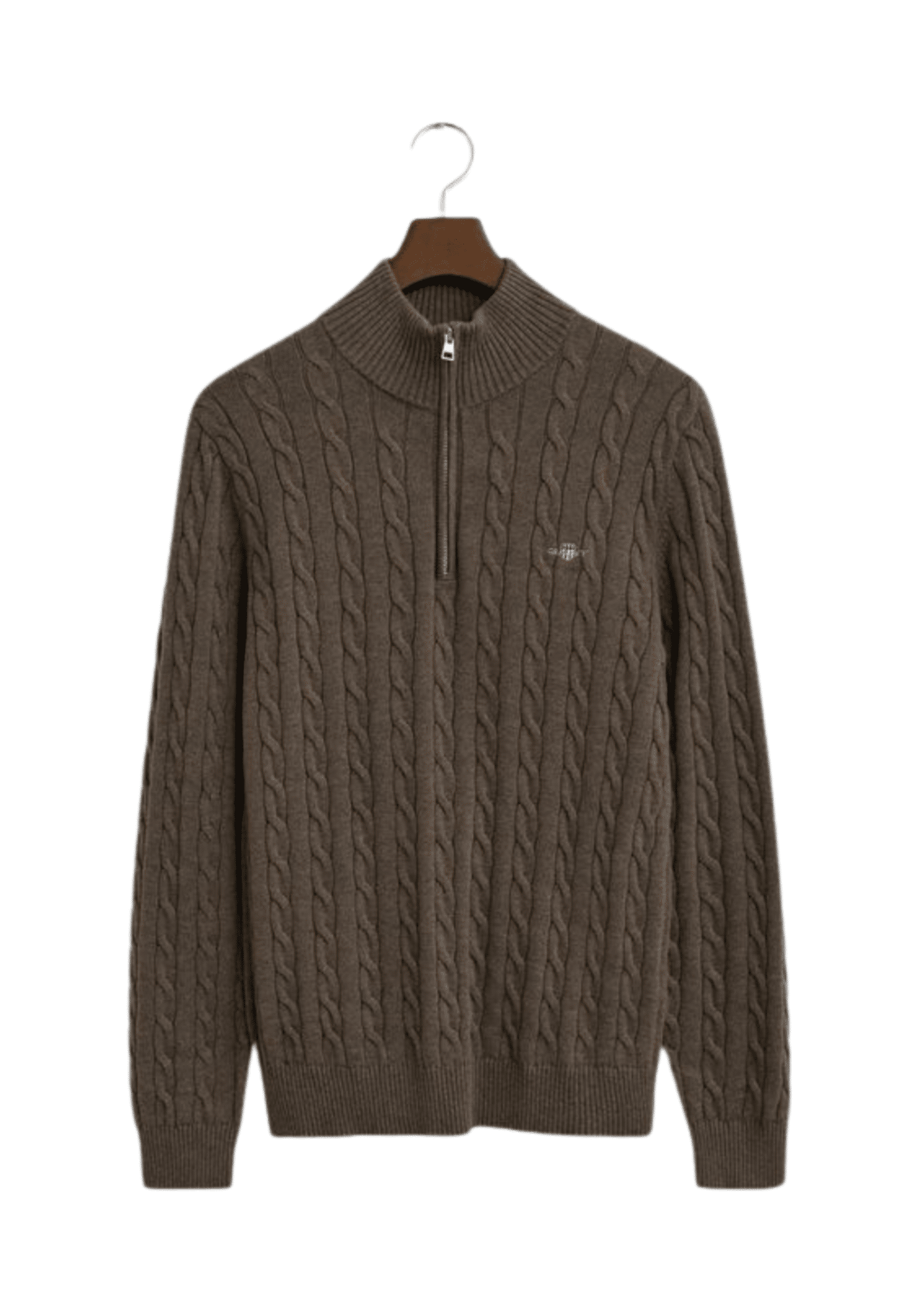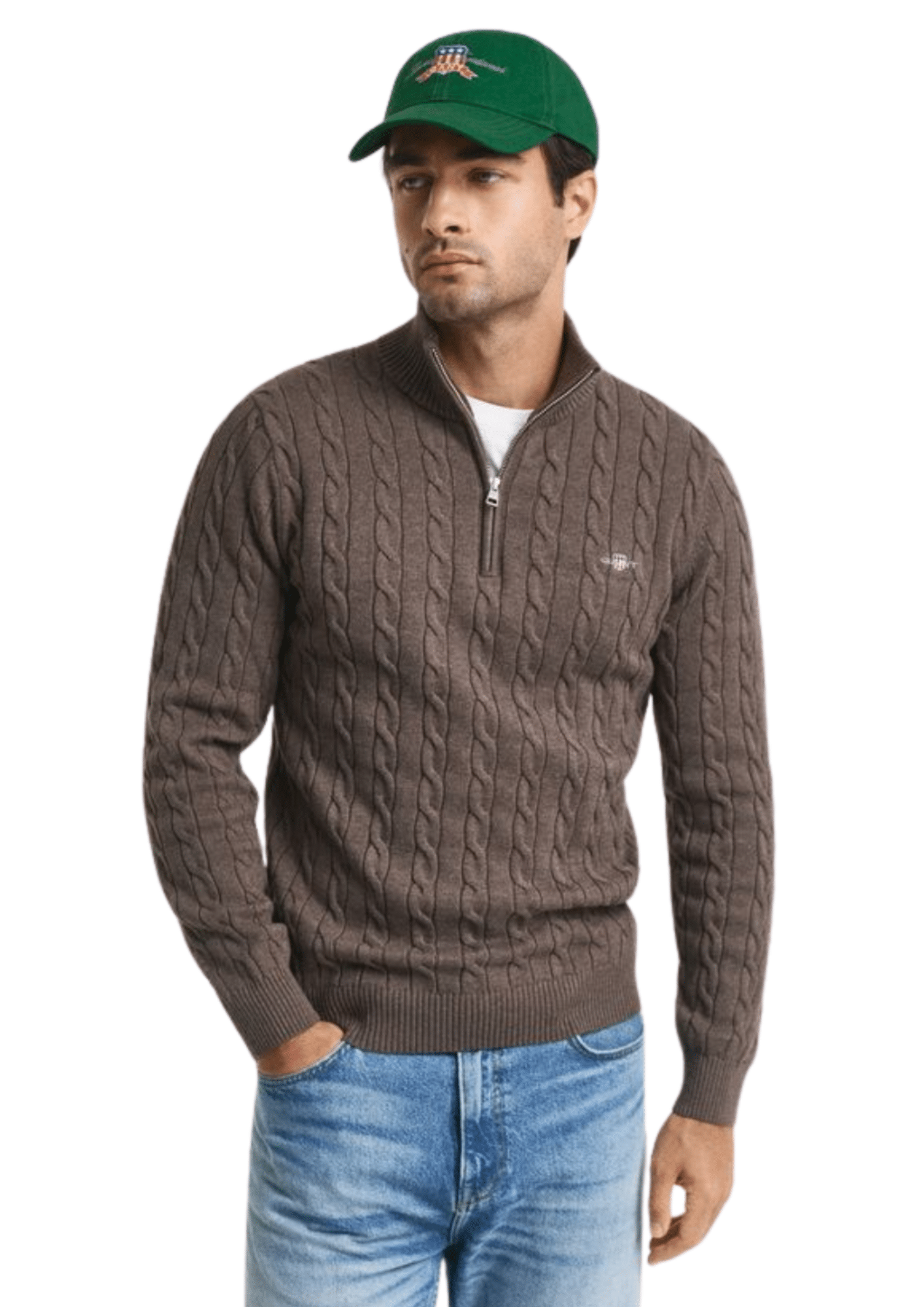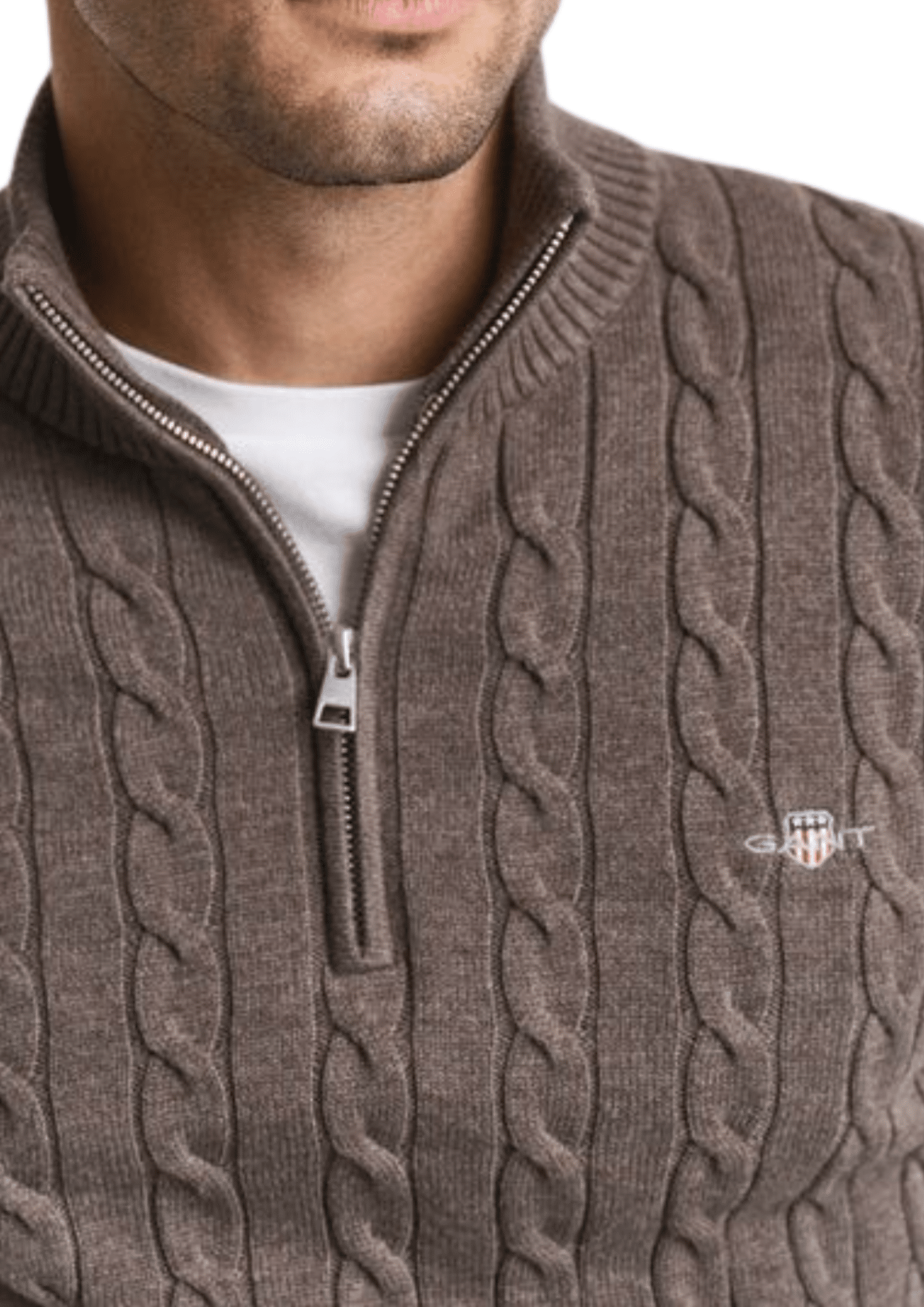 סוודר לגברים מבית GANT, מדגם Cotton Cable-Knit Half-Zip Sweater.
