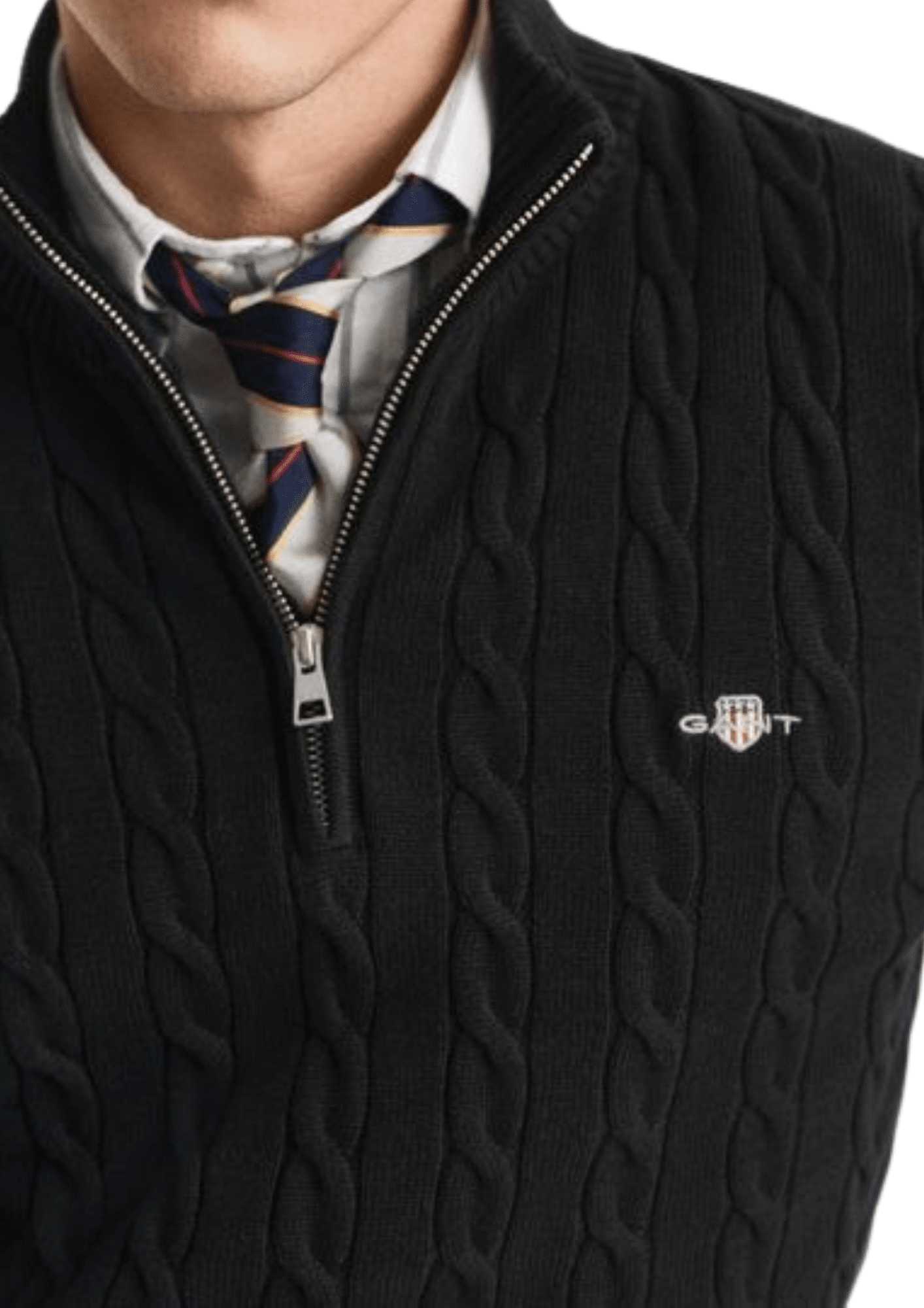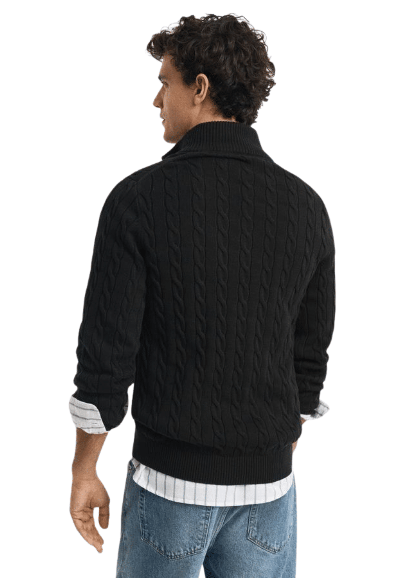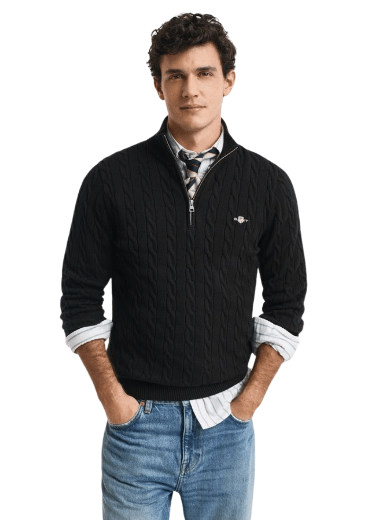 סוודר לגברים מבית GANT, מדגם Cotton Cable-Knit Half-Zip Sweater.