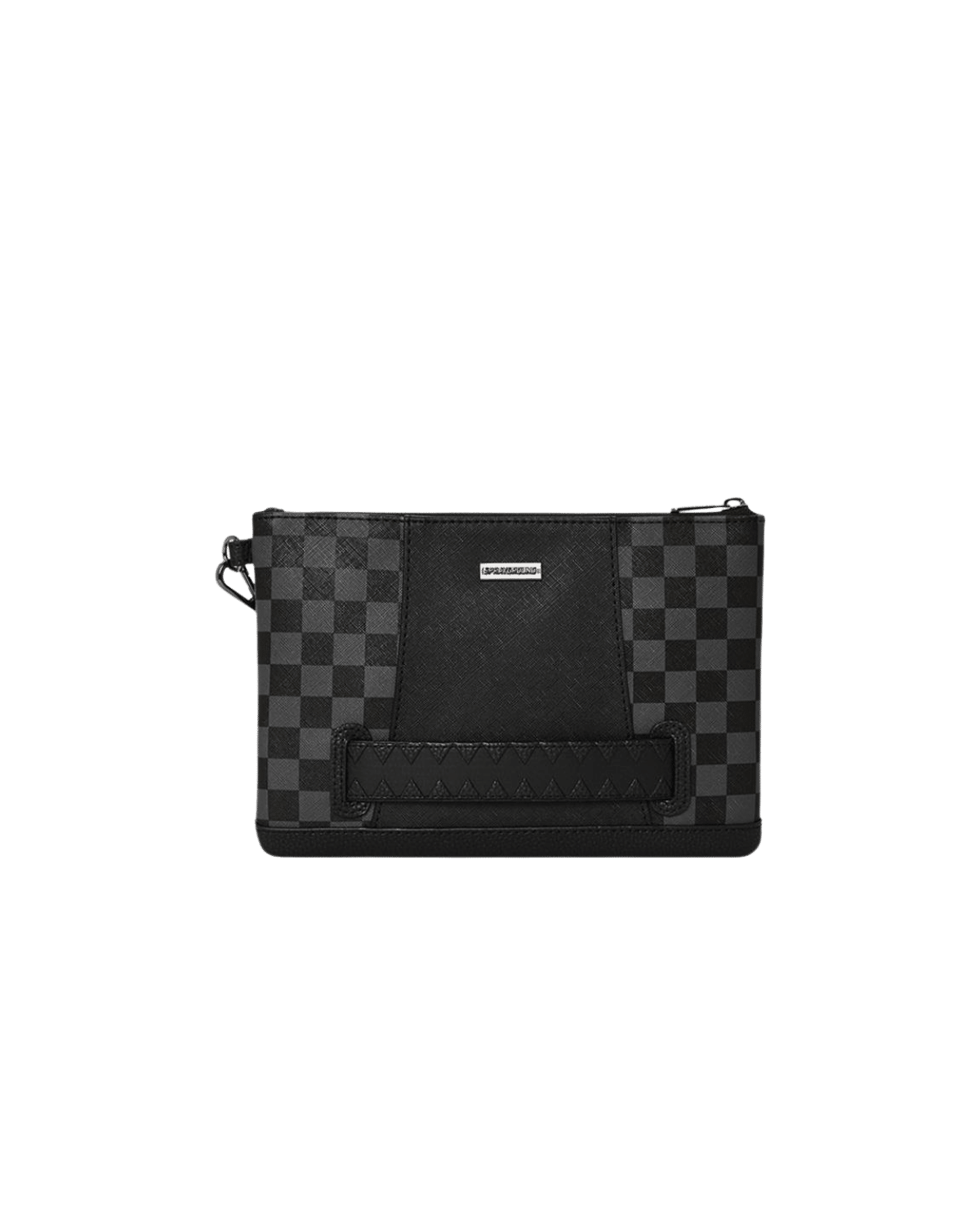 תיק צד יוניסקס אלגנטי בעיצוב מינימליסטי ויוקרתי, בגוון שחור עם דוגמת משבצות בגווני אפור כהה. במרכזו מוטבע סמל גרפי ייחודי המוסיף מראה יוקרתי ומובחן.