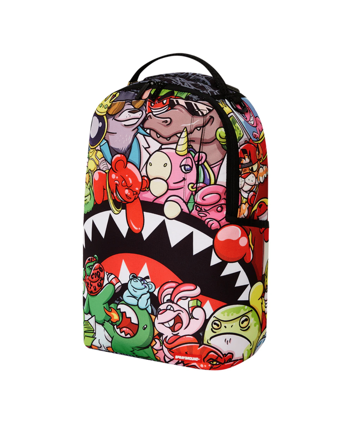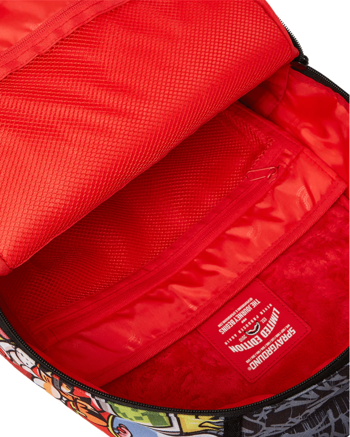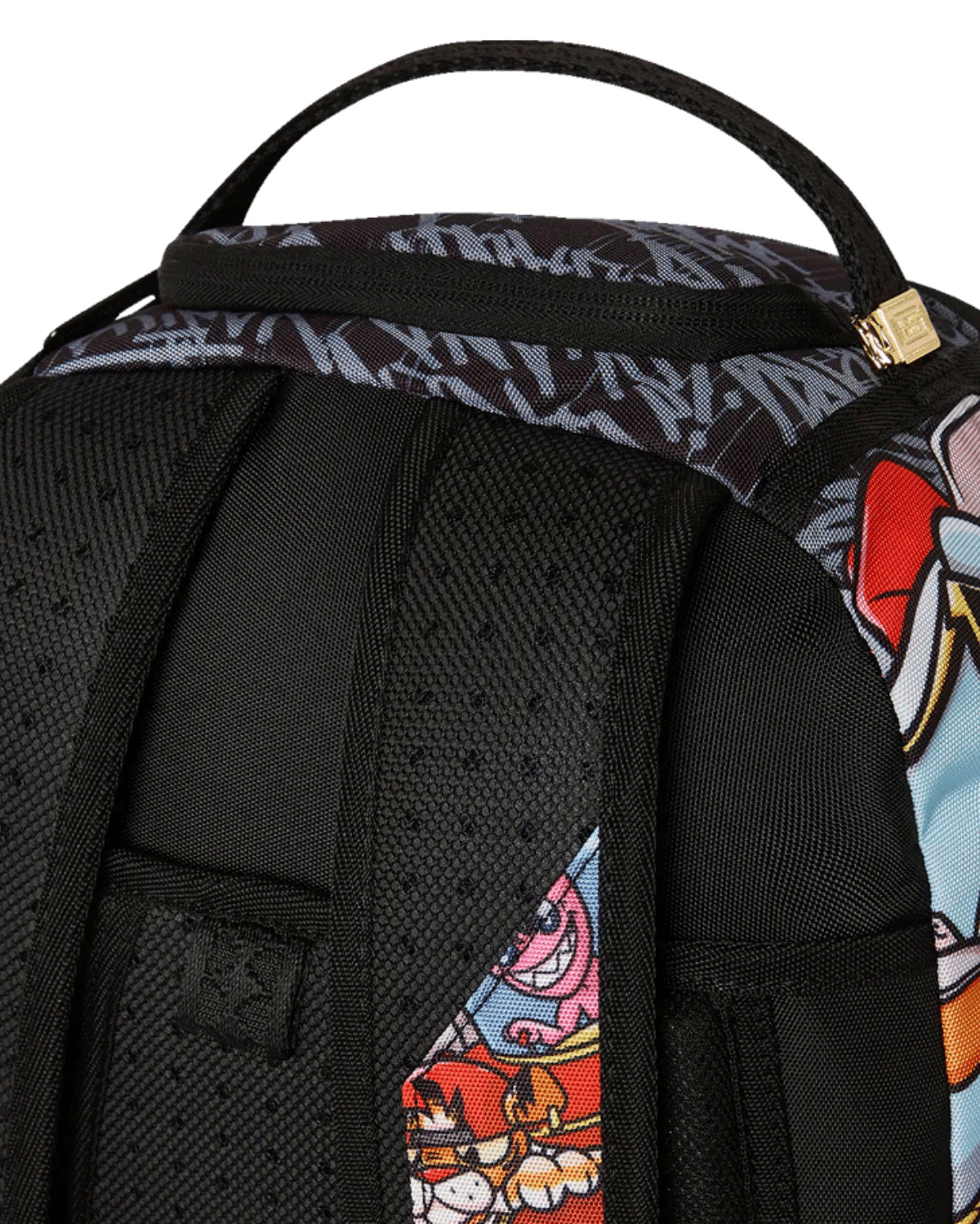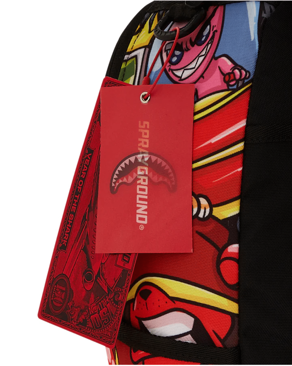 תיק גב יוניסקס של SPRAYGROUND בדגם דינמי וצבעוני המשלב עולמות קרטון ותרבות פופ.