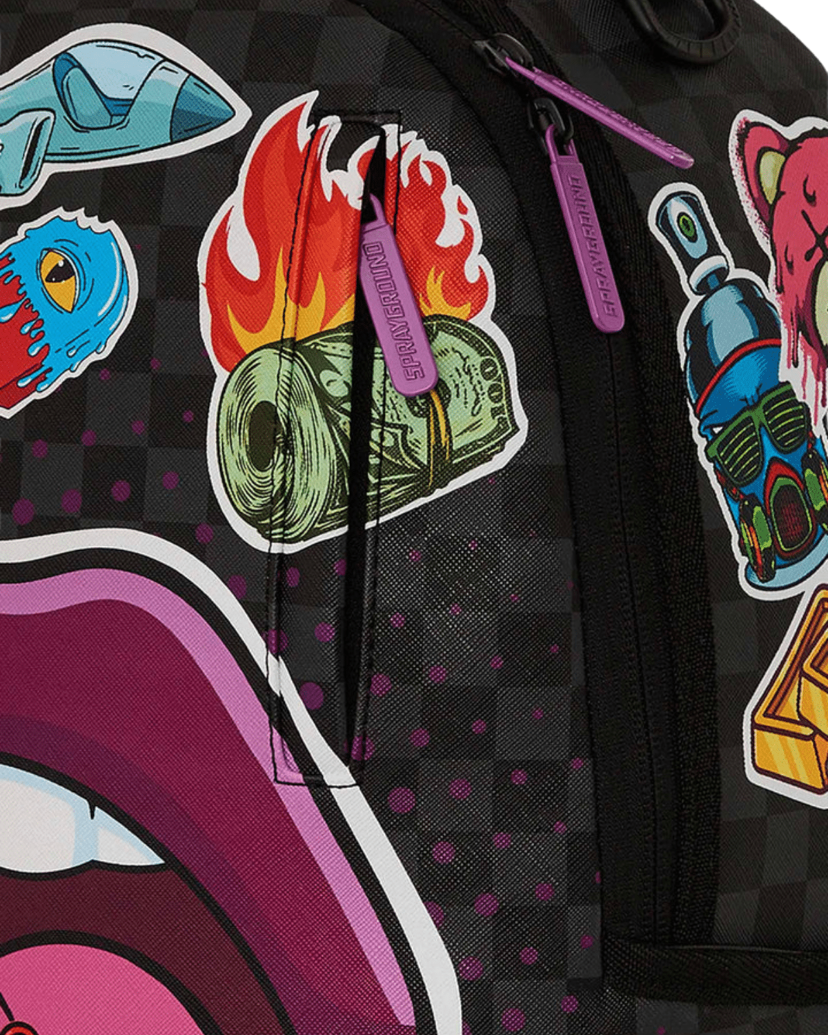 תיק גב יומי יוניסקס, בעיצוב עכשווי עם הדפס גרפי ייחודי בסגנון סטיקרס המאפיין את SPRAYGROUND
