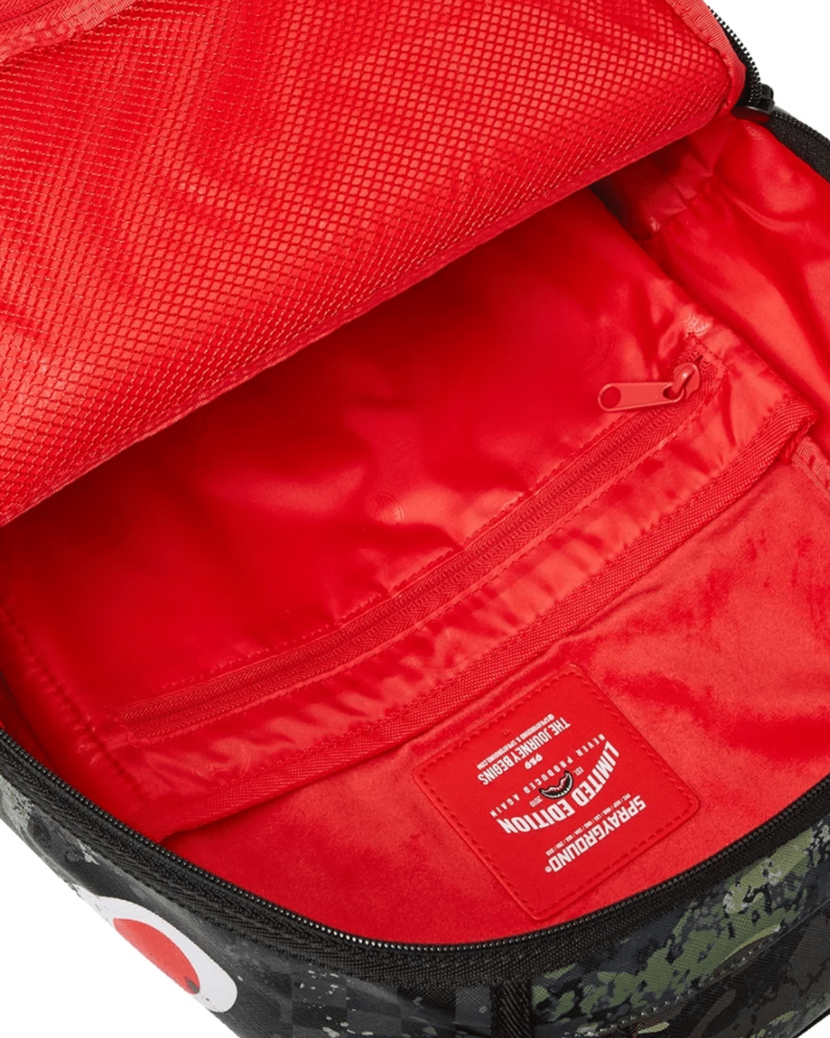 תיק גב יוניסקס מבית SPRAYGROUND בעיצוב מודרני עם הדפס קמופלאז' צבעוני ומרשים המשלב גוונים ירוקים ושחור.