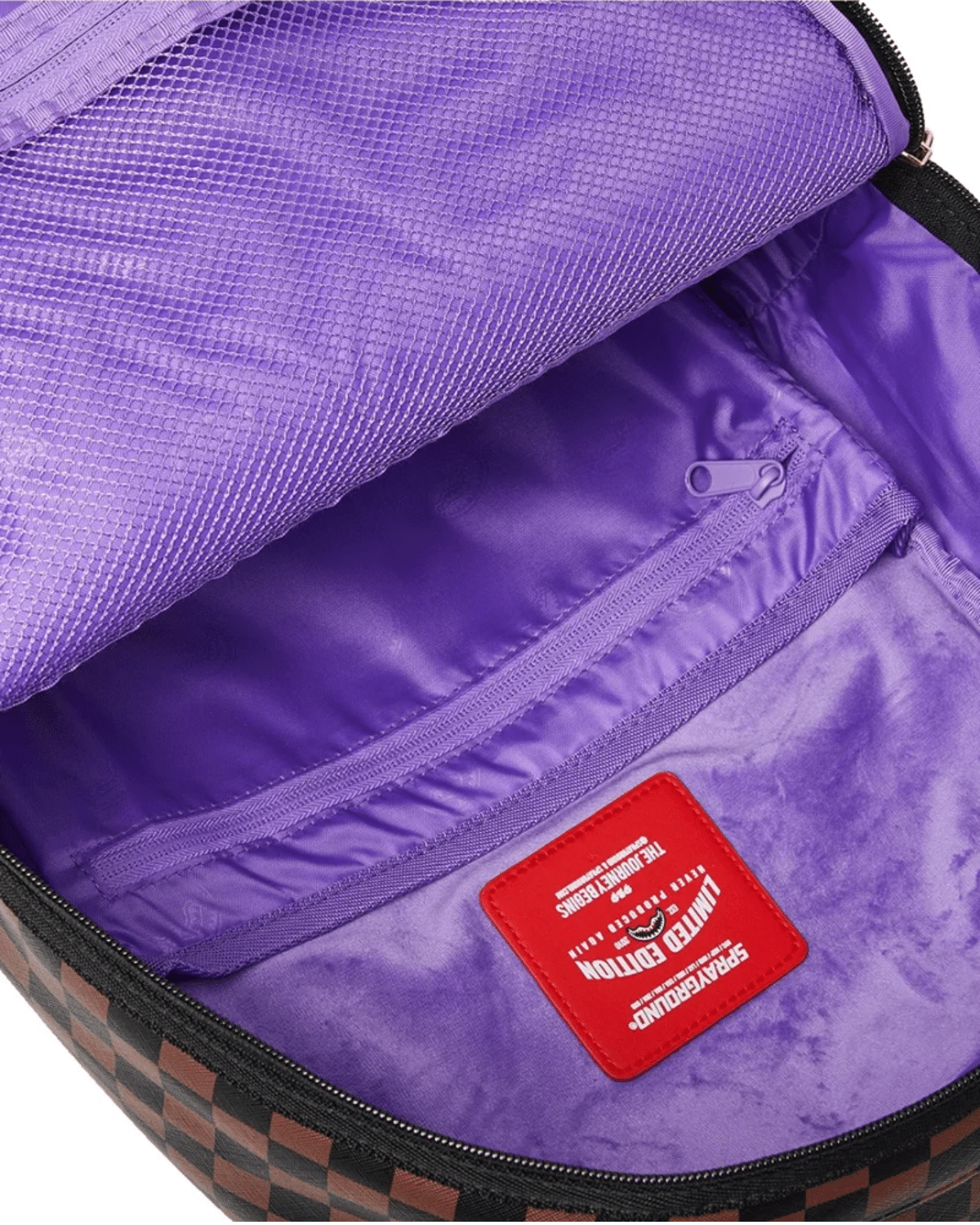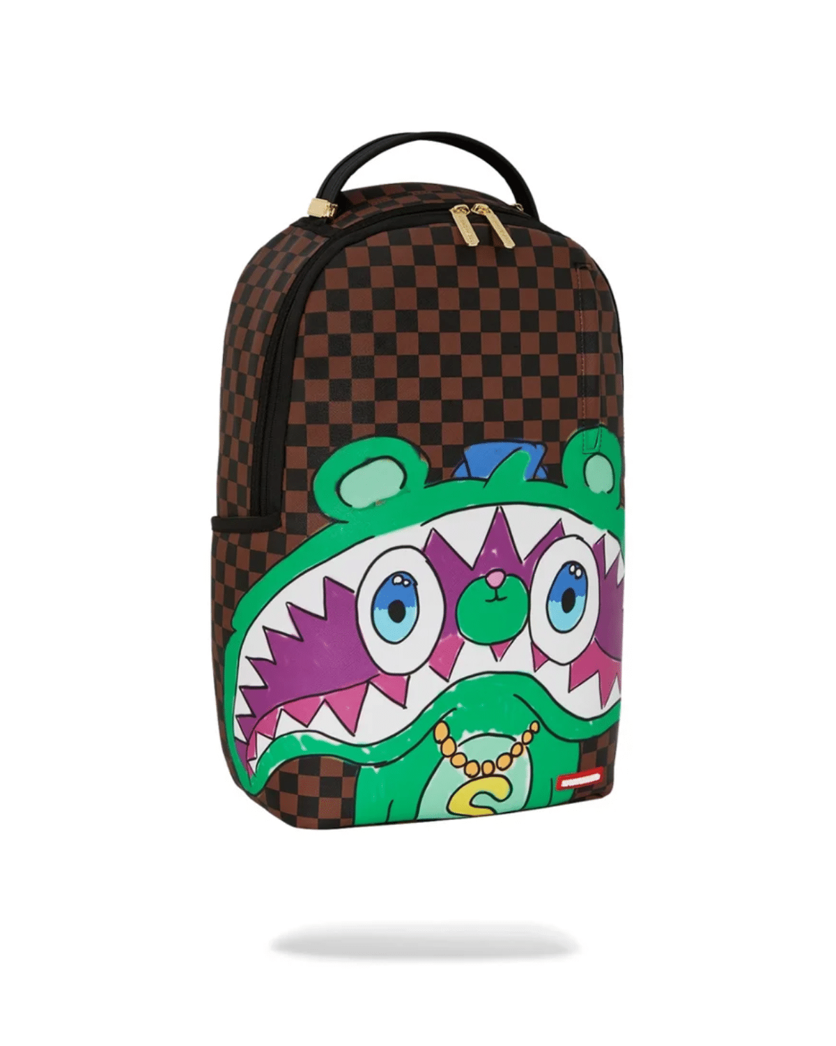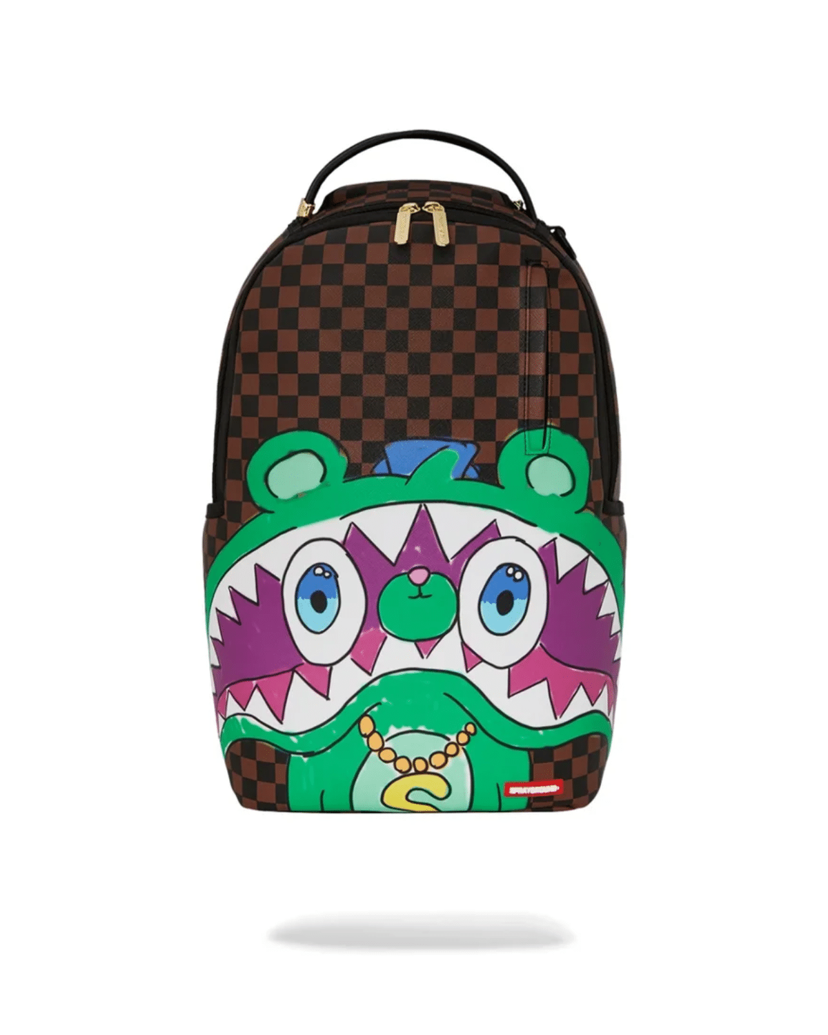 תיק גב יוניסקס מבית SPRAYGROUND, במראה צבעוני ובולט של ירוק וסגול.