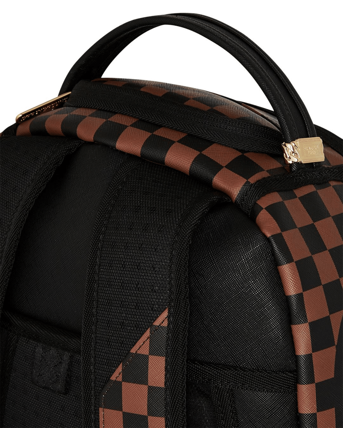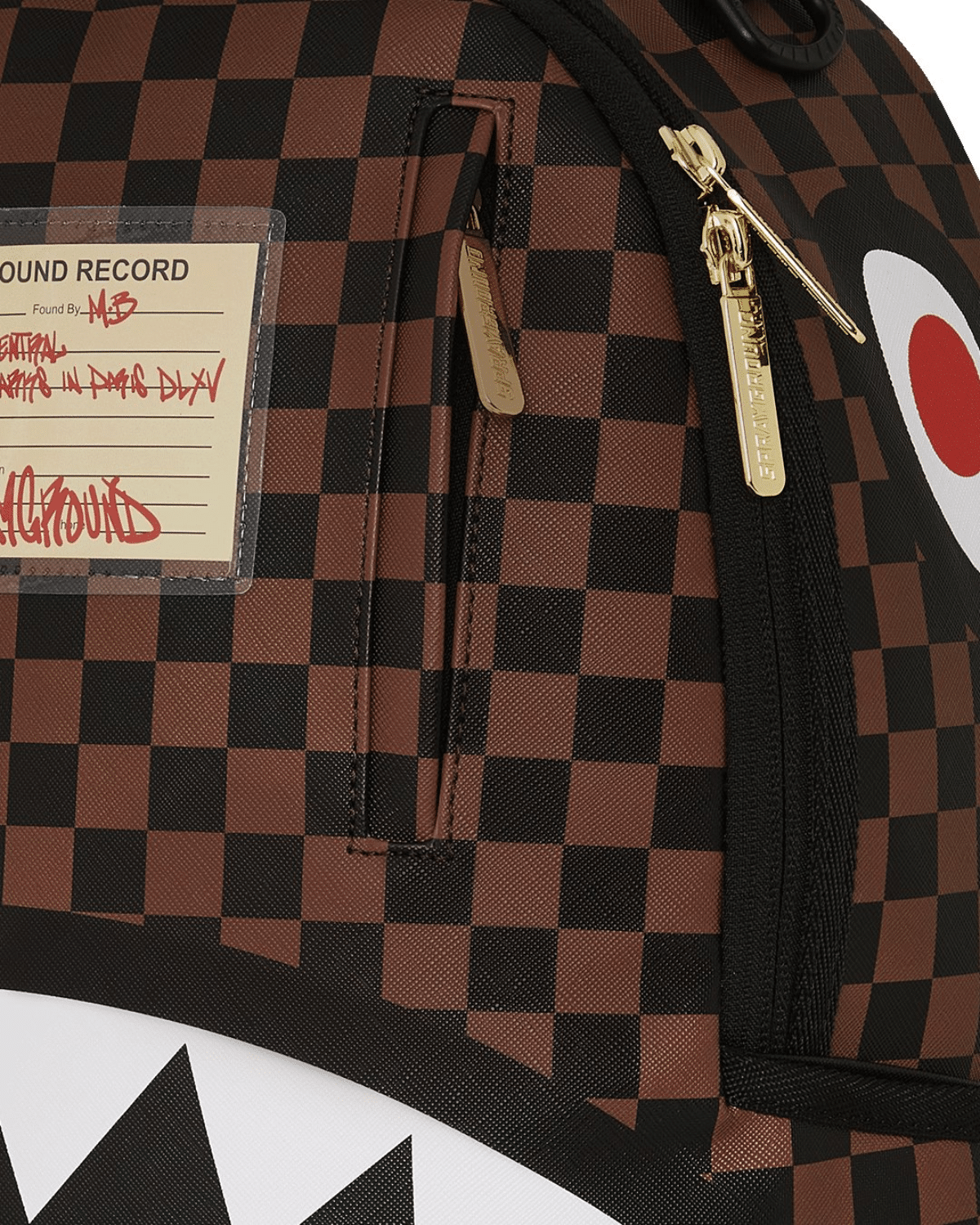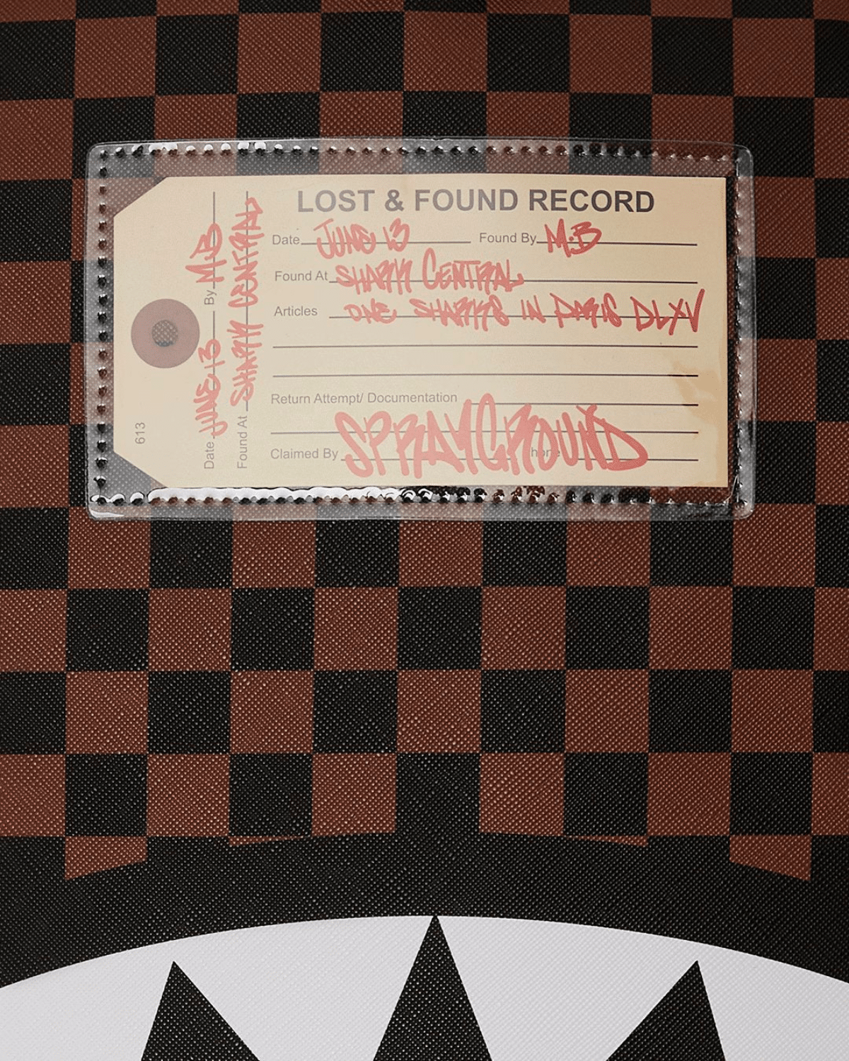 החזית מציגה דוגמת משבצות שחור‑אפור במראה יוקרתי, שבורה בפתאומיות על ידי לוע כריש גרפי בולט – סמל האיקוני של המותג.