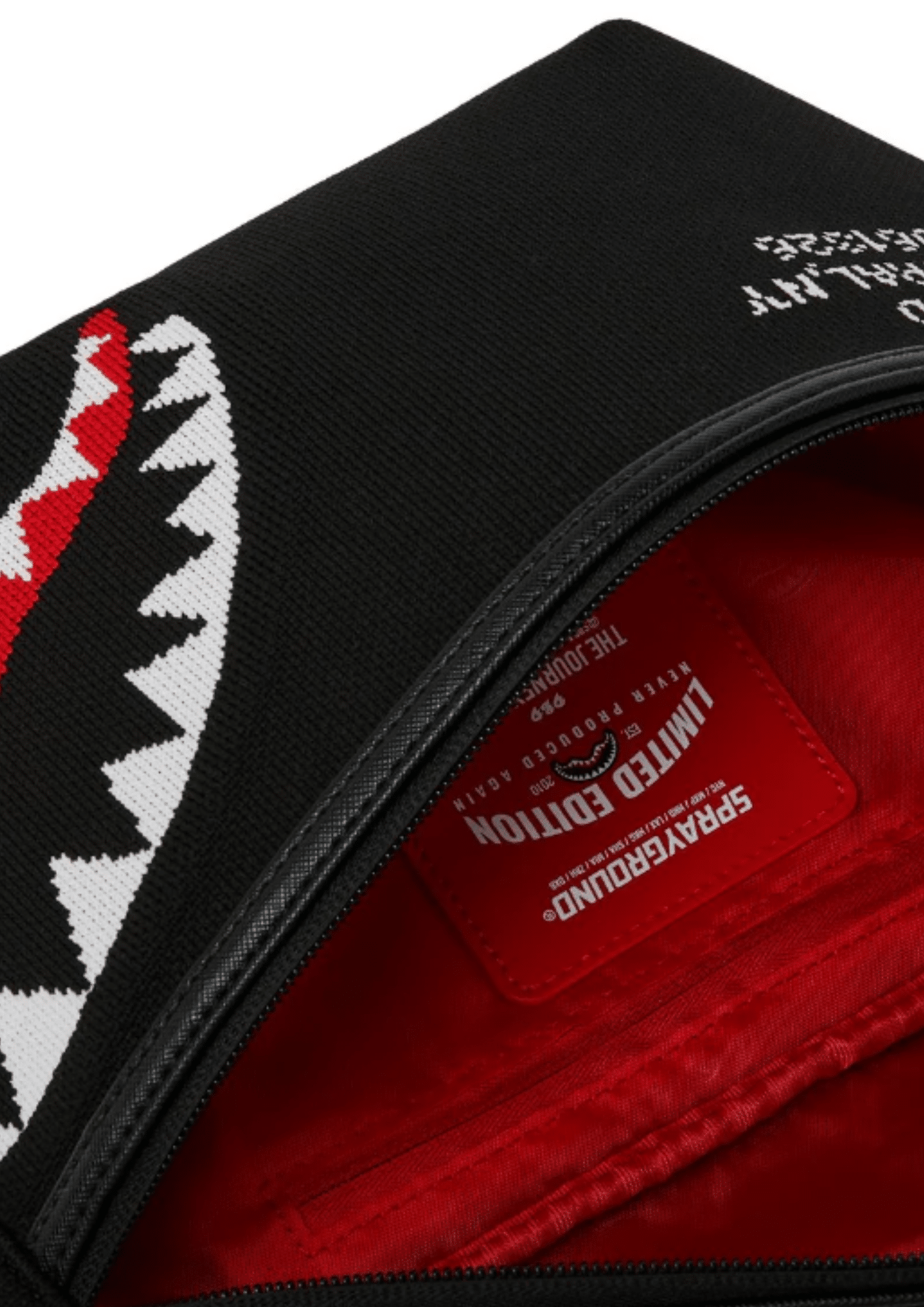עיצוב: רקמה/בד סרוג שחור (knit) עם פרטי גרפיקה אופנתיים של המותג Sprayground.