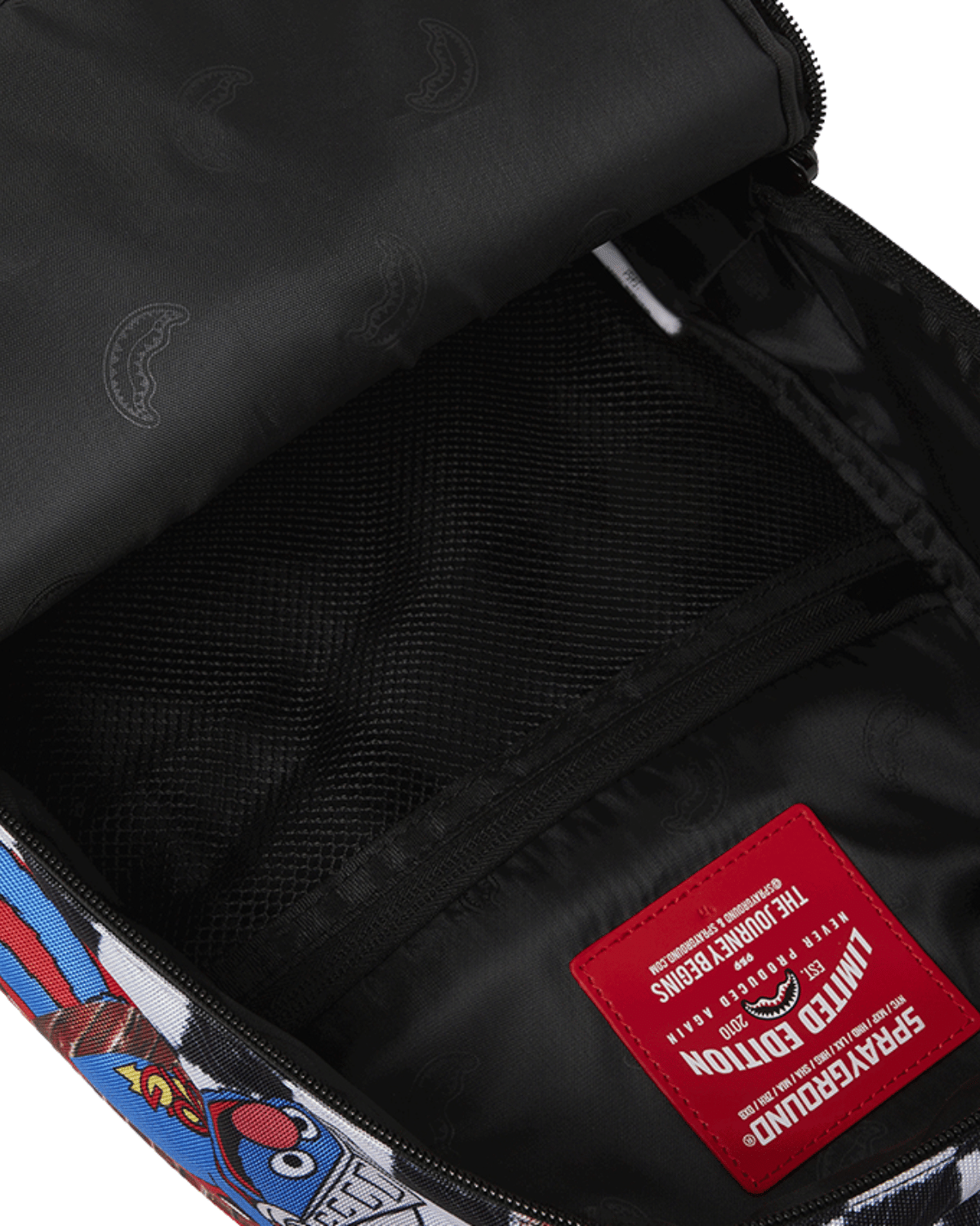 תיק הגב משלב עיצוב צבעוני וייחודי בהשראת הדמויות האייקוניות של רחוב סומסום מבית SPRAYGROUND