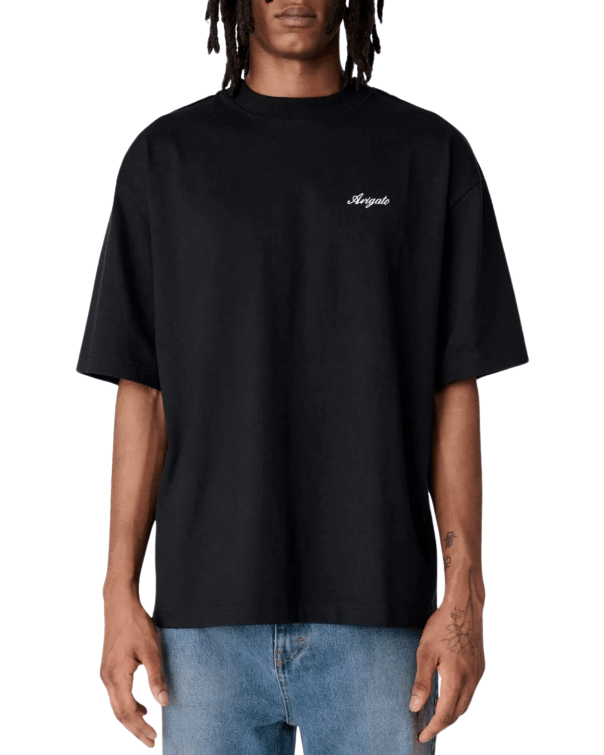 חולצת טי-שירט קצרה בצבע שחור קלאסי, המעוצבת בקווים נקיים ומתאימה לשילוב מושלם במראה יומיומי מוקפד.