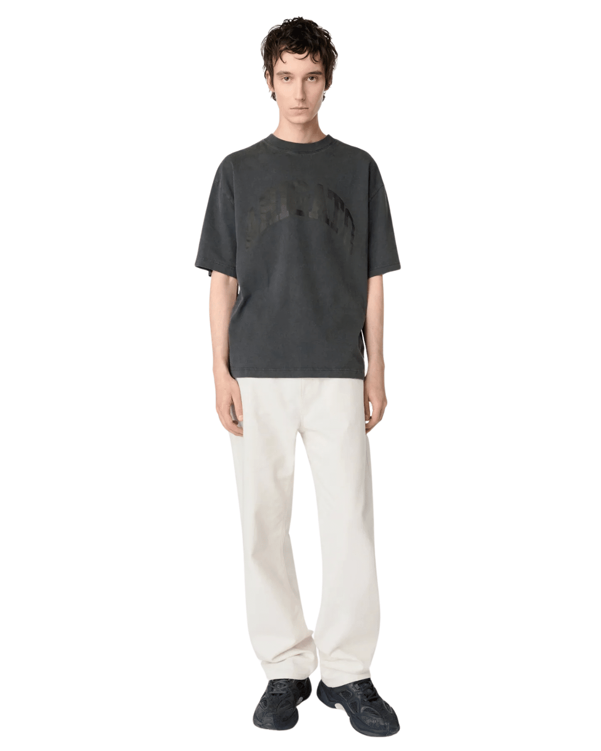 חולצת טי-שירט קצרה לגברים בצבע אפור כהה, עם גישה נקייה שמייצרת מראה על-זמני וקל לשילוב.