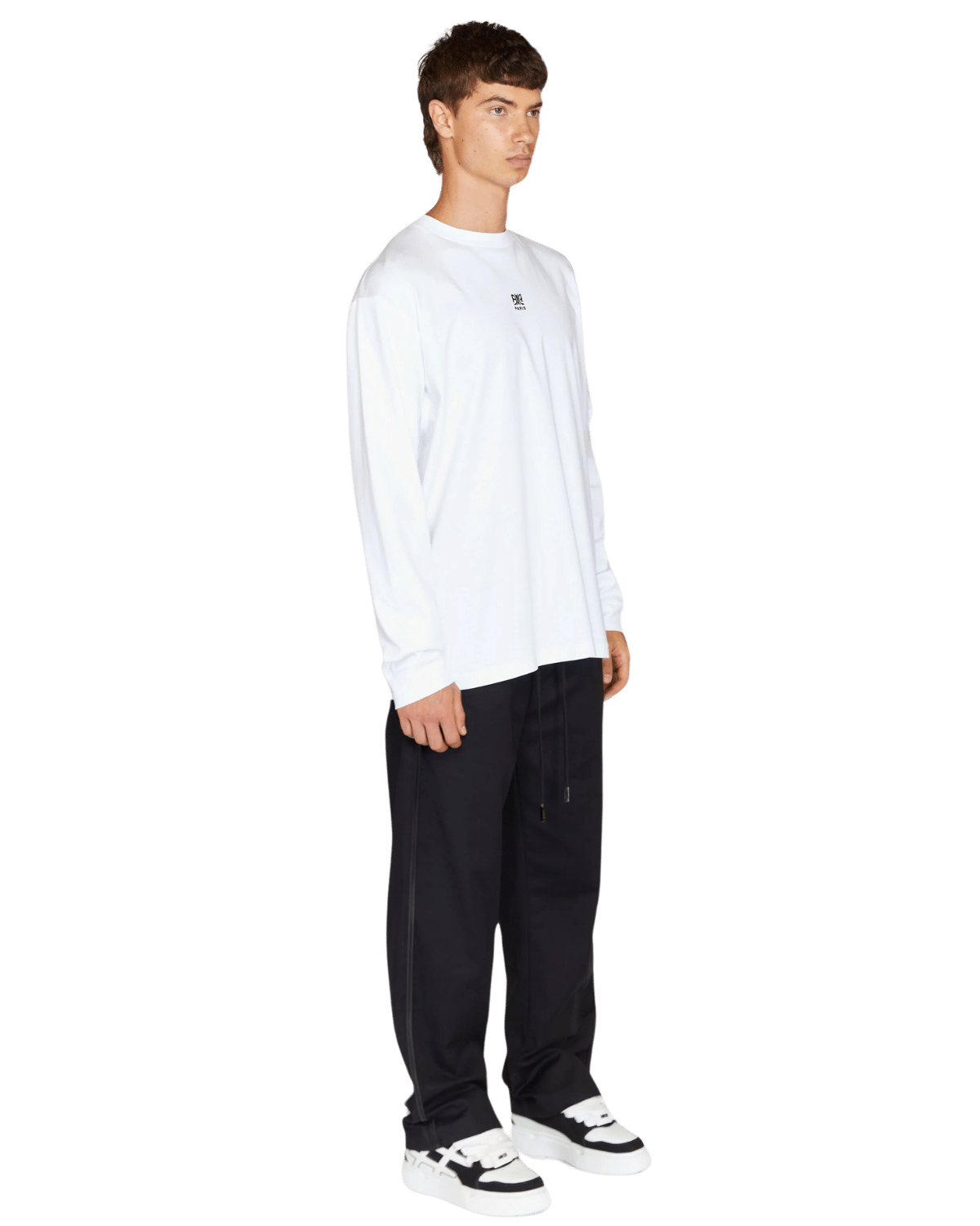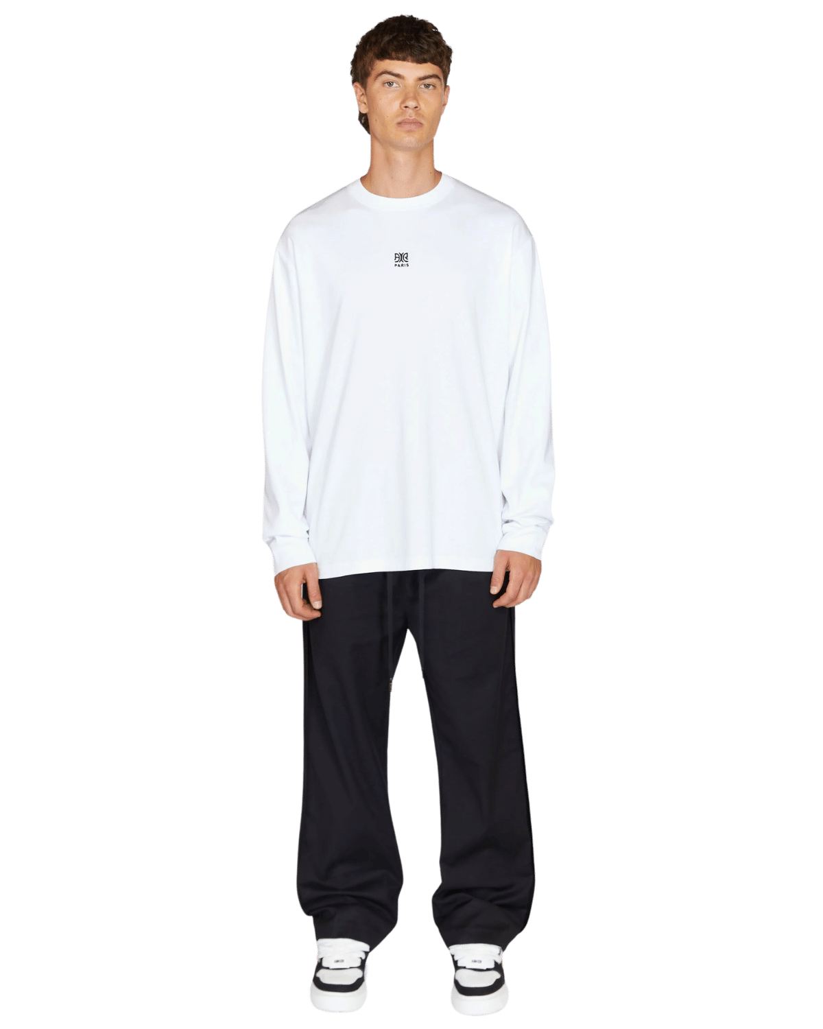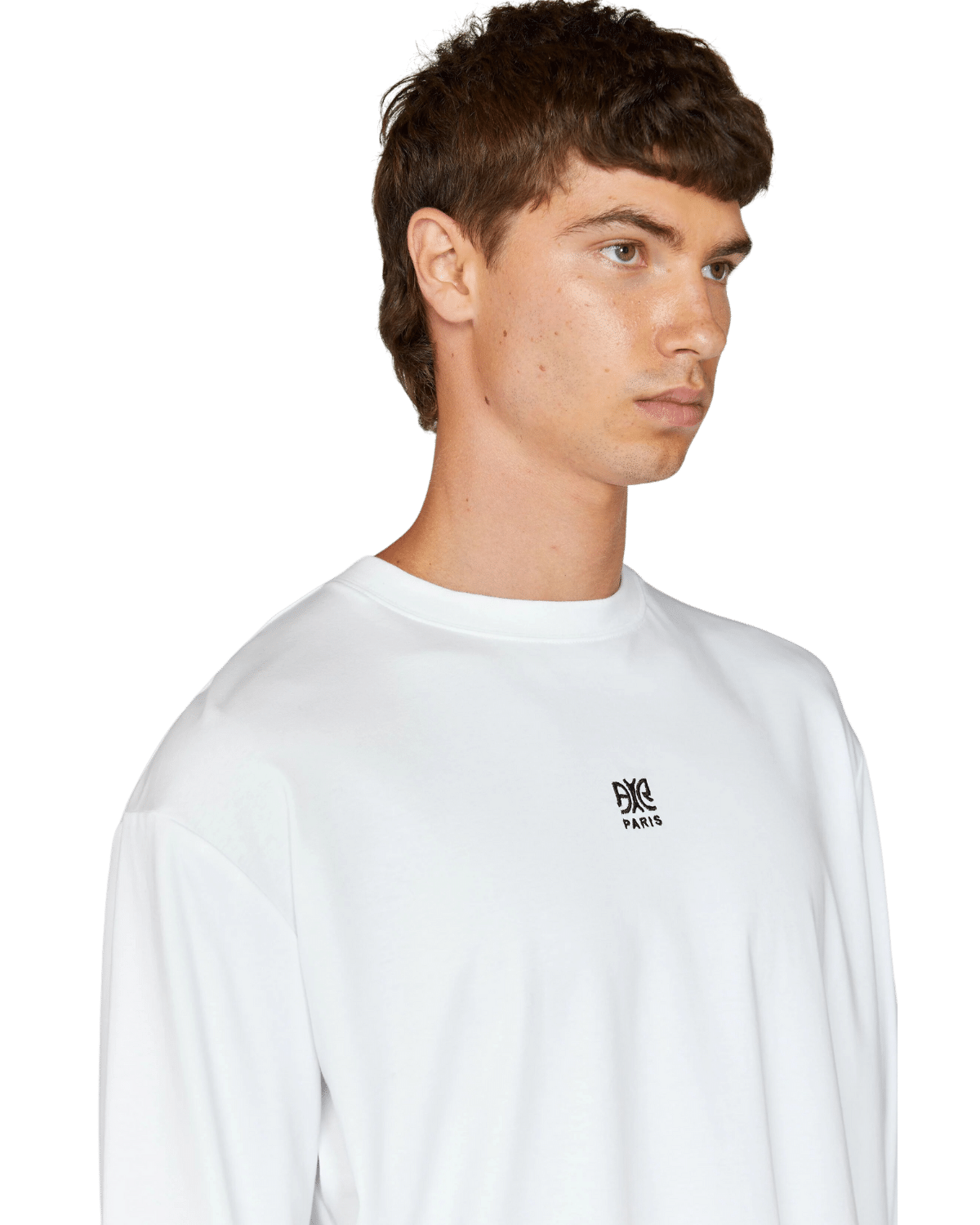 לחולצה גזרת אוברסייז , צווארון מעוגל ושרוולים ארוכים.