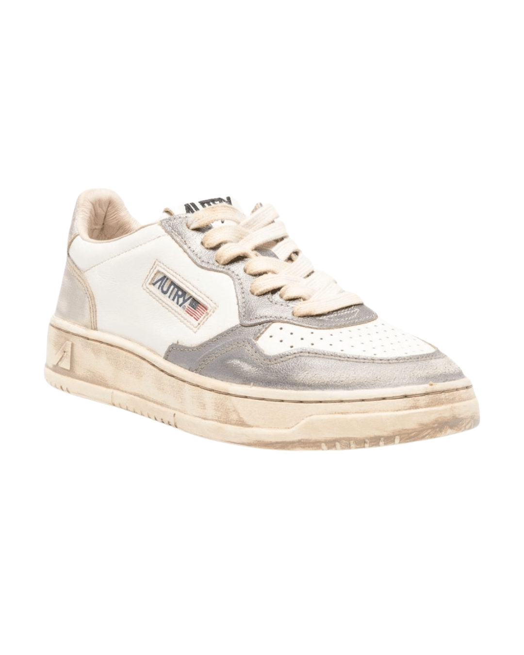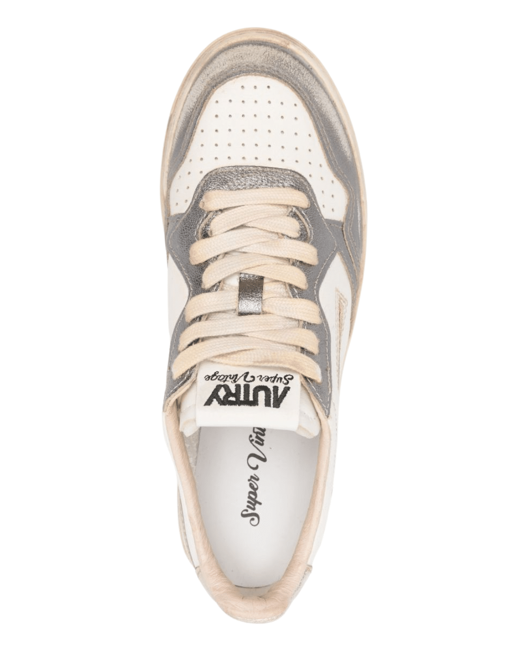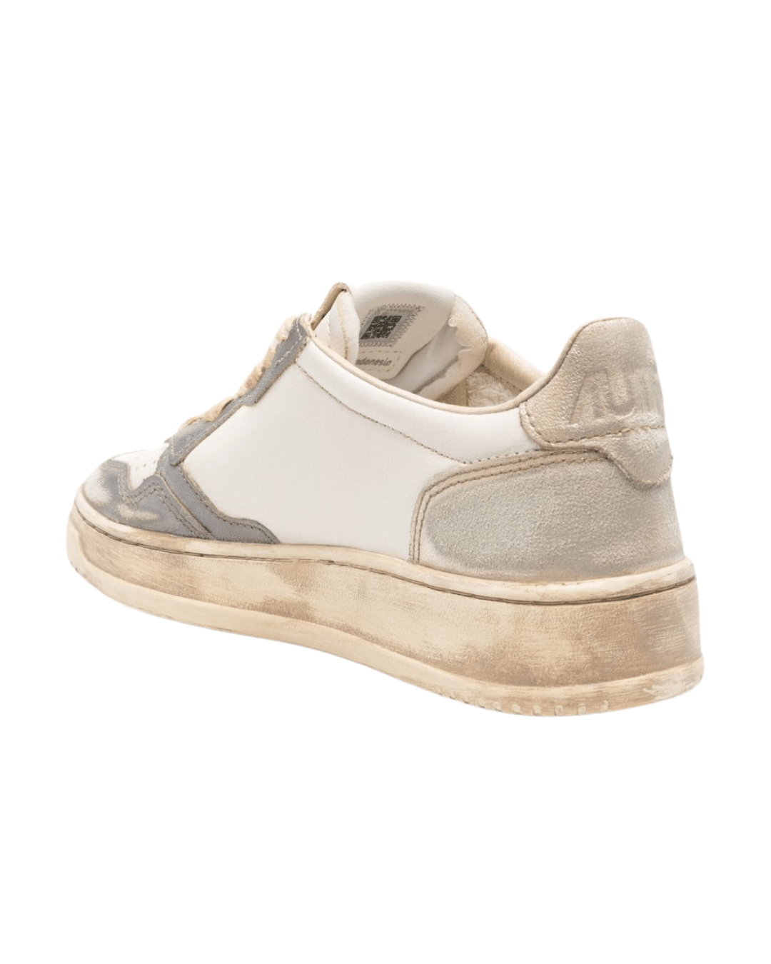 נעלי סניקרס לגבאים מדגם AUTRY AVLM MT09 בגווני אפור, לבן ובז' עם עיצוב קלאסי בסגנון רטרו.