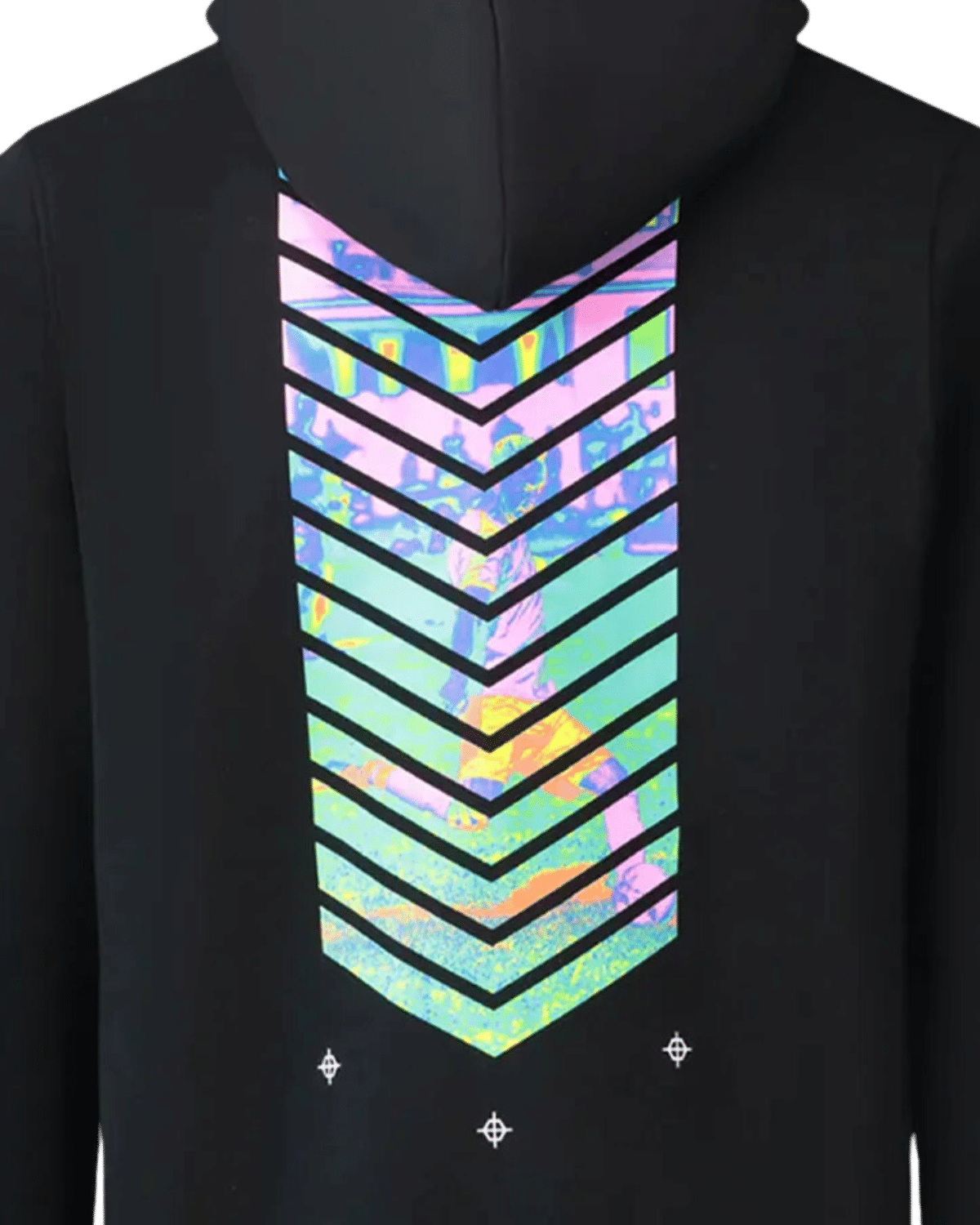 הקפוצ’ון מעוטרת בלוגו המותג המוכר על גבי החזה והדפס על הגב.