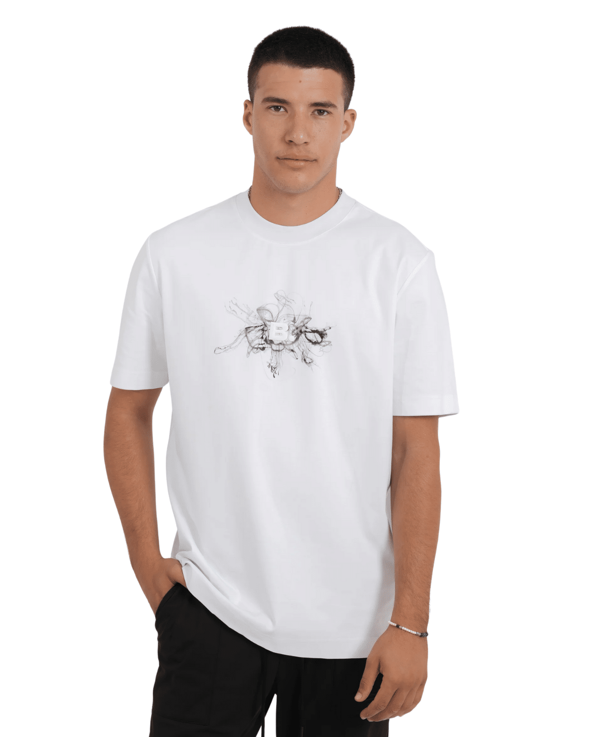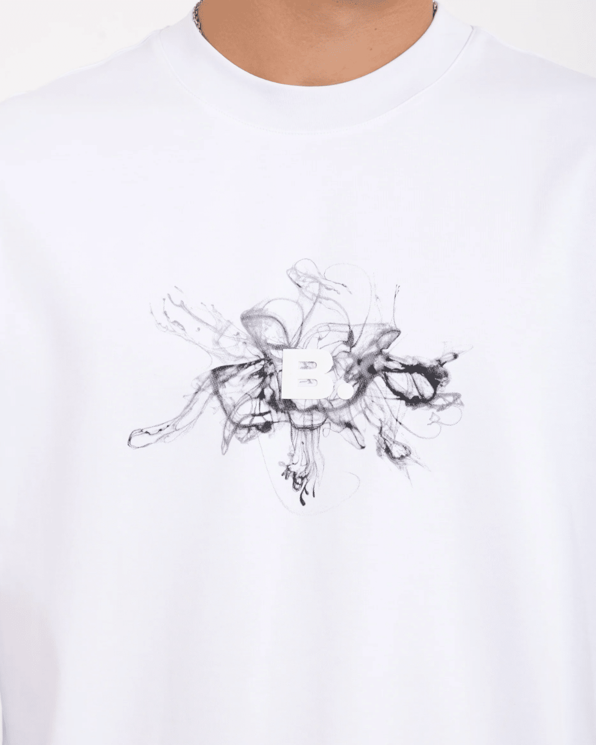 טי-שירט גברים בצבע לבן עם הדפסת חזה מינימליסטית מבית BLACK DOT