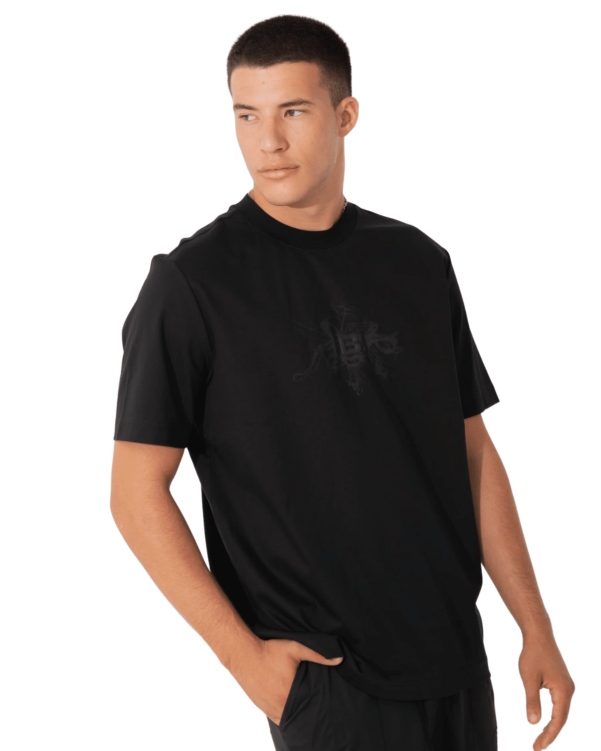 טי-שירט גברים בצבע שחור מלא מדגם Urban Mark של BLACK DOT