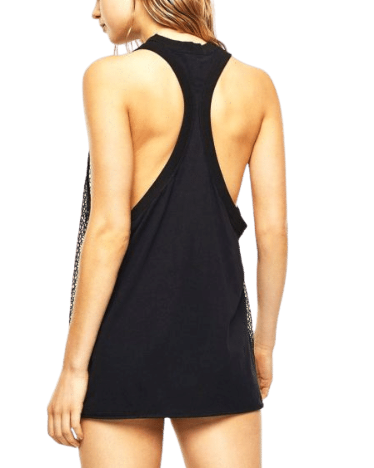הגזרה בגופייה רחבה עם כתפיות עבות, מחשוף עגול גבוה ופתחים צידיים עמוקים. מושלם כלבוש חופשי לחוף הים, למסיבות בריכה או כשכבת סטייל מעל בגד גוף.