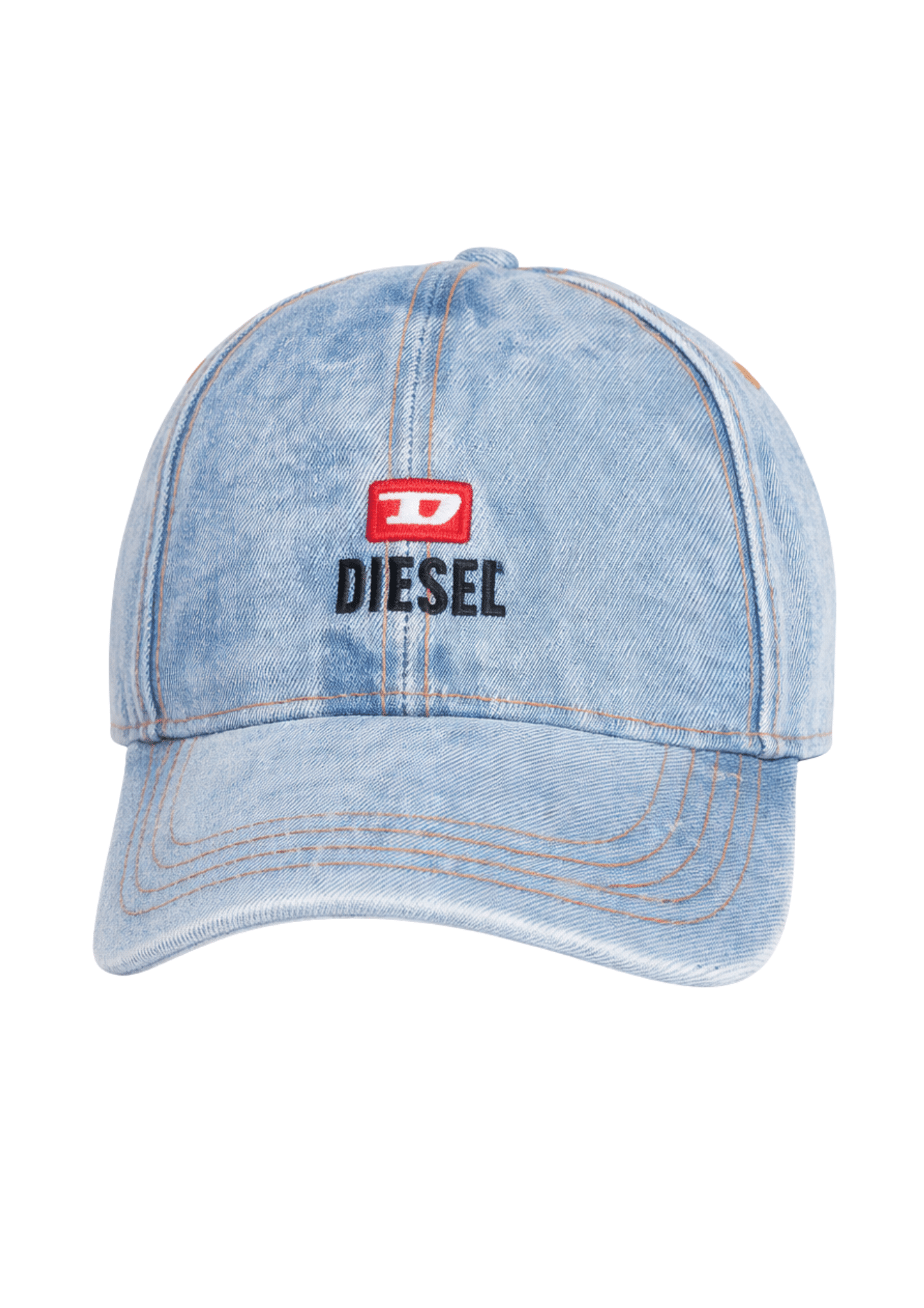 כובע בייסבול אופנתי מבית Diesel, בעיצוב ג’ינס ייחודי עם לוגו רקום בחזית וטאץ’ אדום אייקוני.