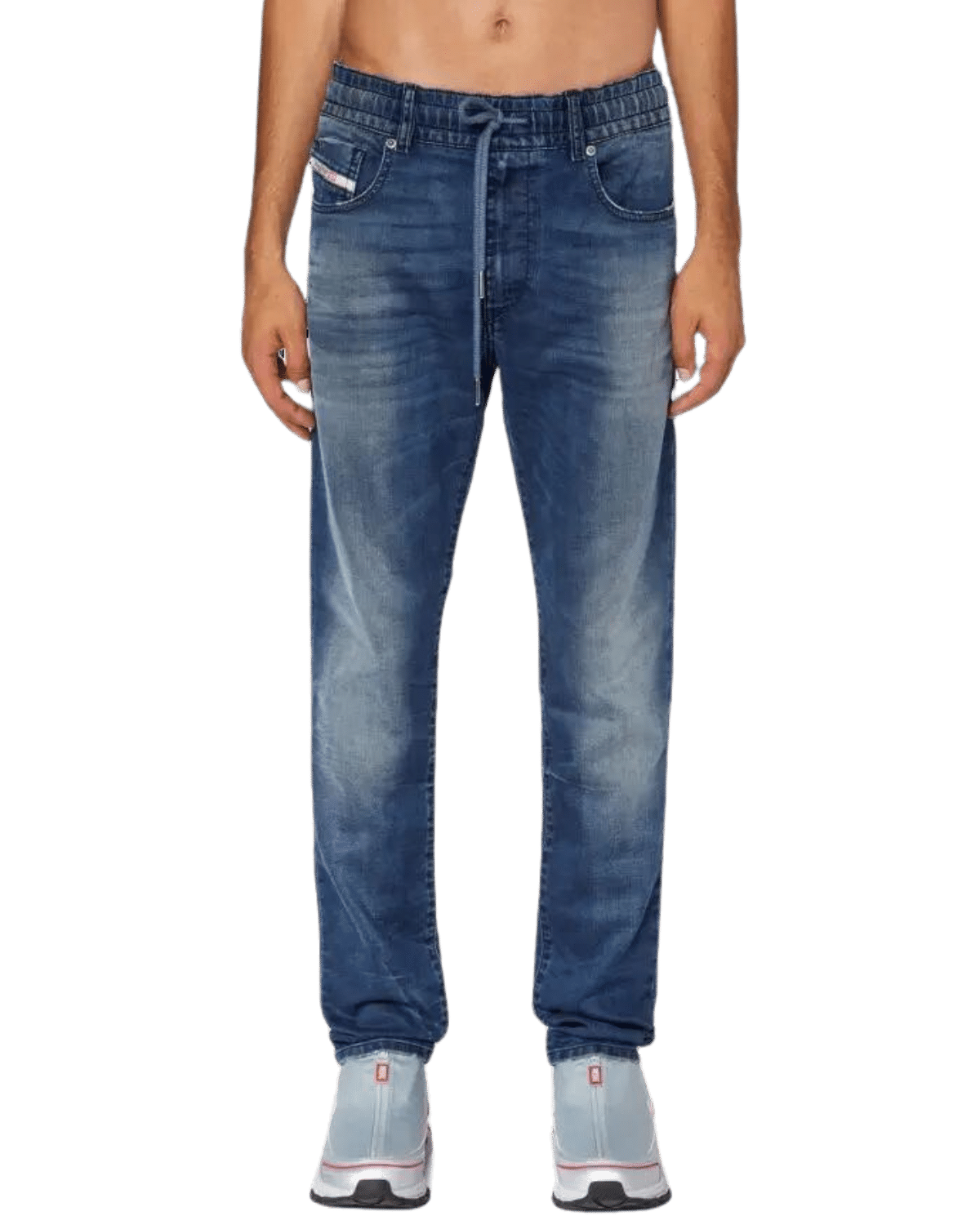 ג׳ינס מבד נעים ונוח בצבע כחול, בגזרה צרה וישרה וגומי במותניים. (Slim D-Strukt JoggJeans 068FT)