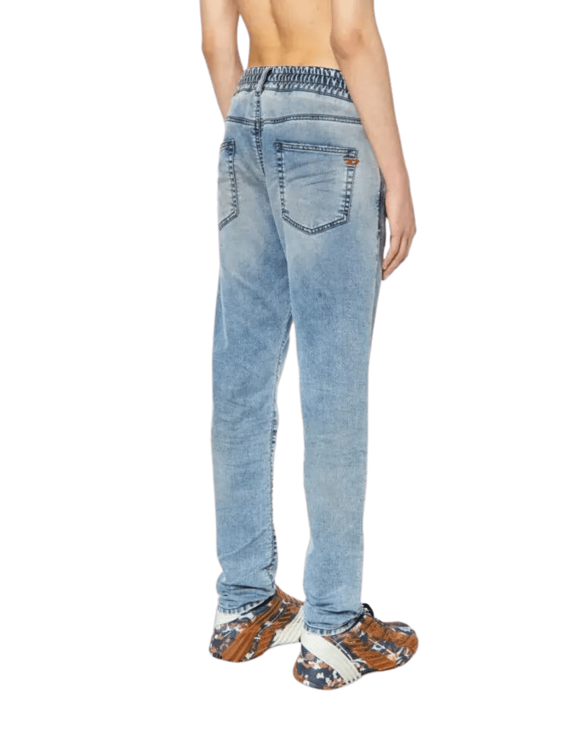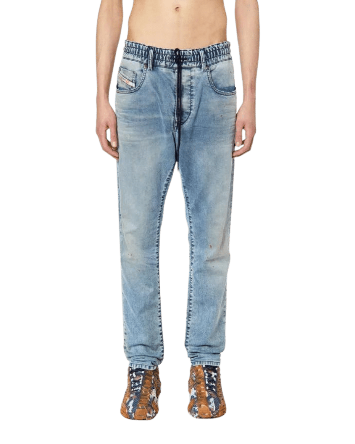 ג׳ינס כחול בהיר בגזרה צרה וישרה מבד ג׳וג ג׳ינס נעים ונוח, עם שפשופים