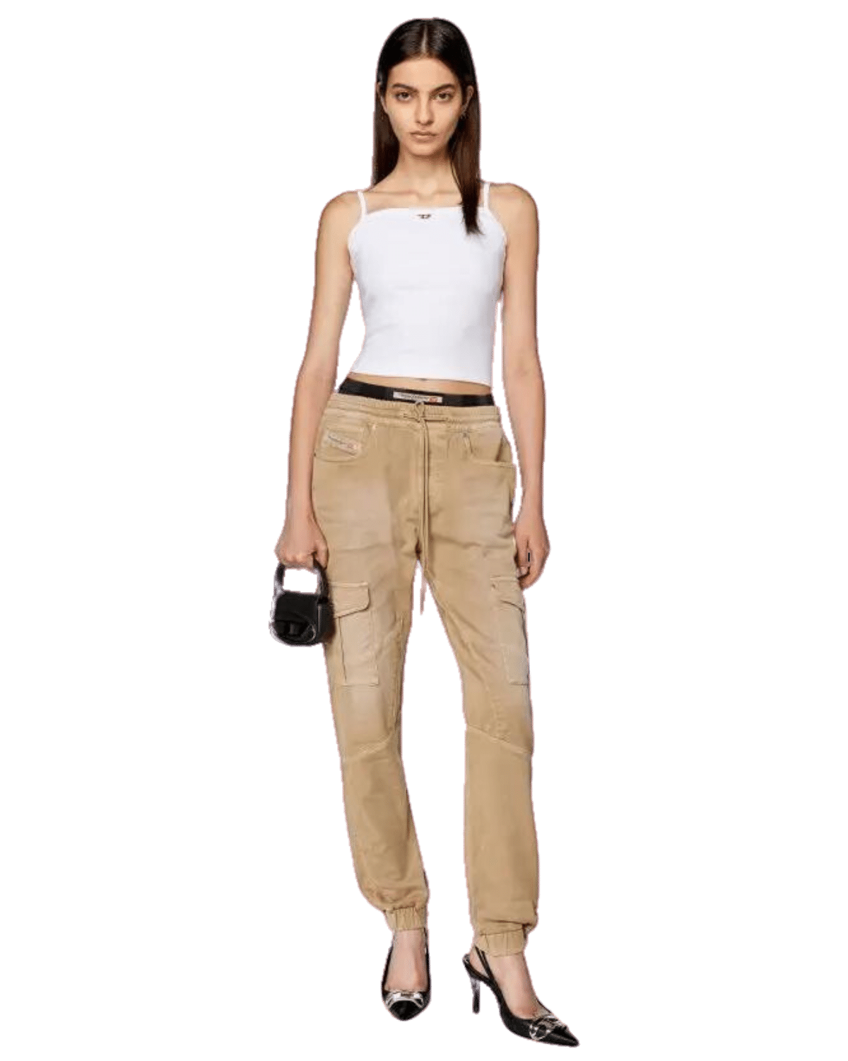 דגמ"ח ג'ינס יוניסקס בגוון חום בהיר/בז' בעיצוב מחוספס עם השראה צבאית-אורבנית מבית DIESEL.