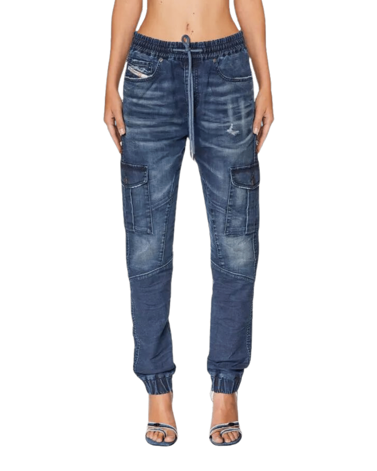 מכנסי דגמ״ח מבד דנים נוח ובגזרת סלים, עם גומי ושרוך במותניים וגומי בקרסוליים.