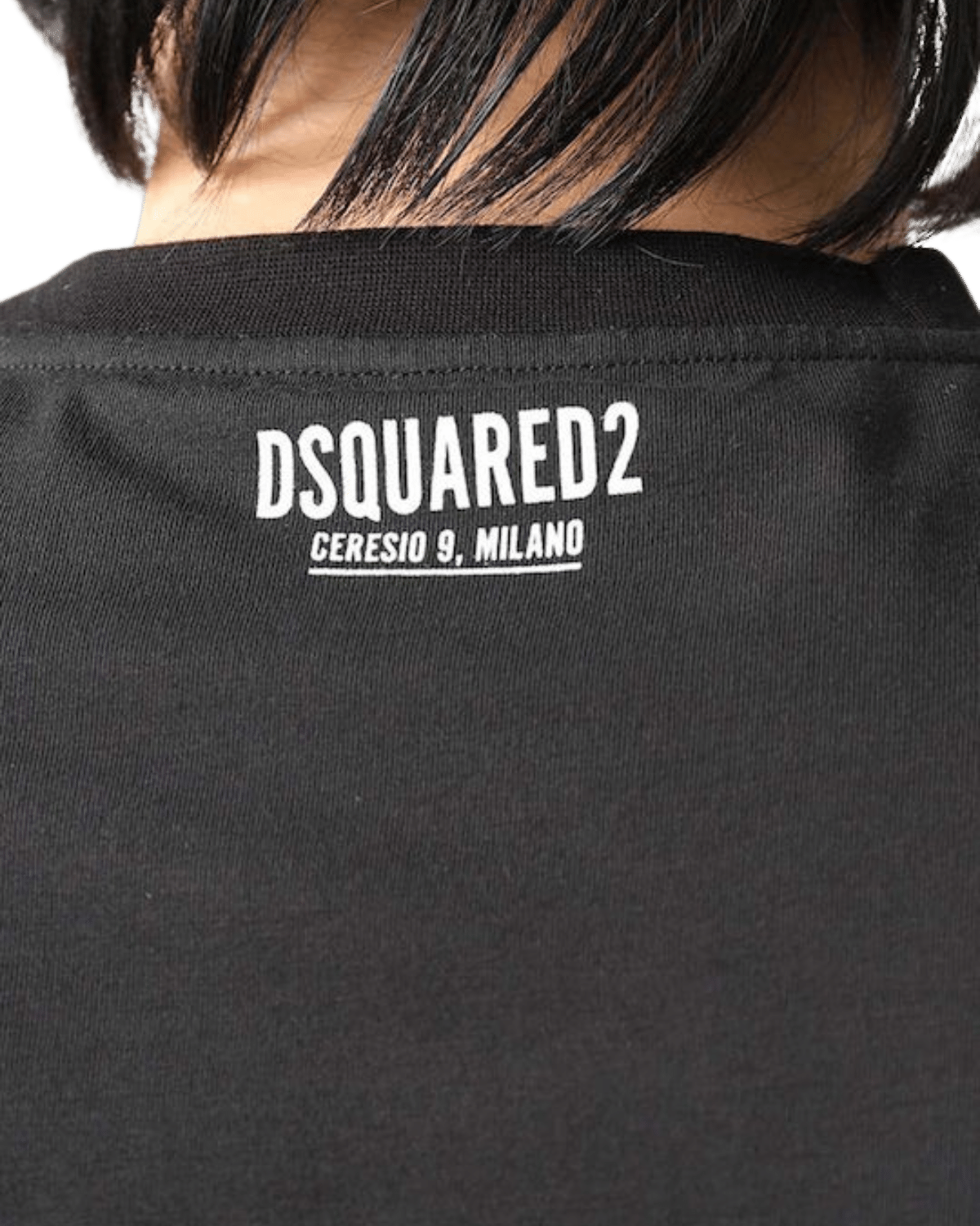 • הדפס גרפי ייחודי בחזית החולצה, המאפיין את הסגנון היצירתי של המותג Dsquared2.