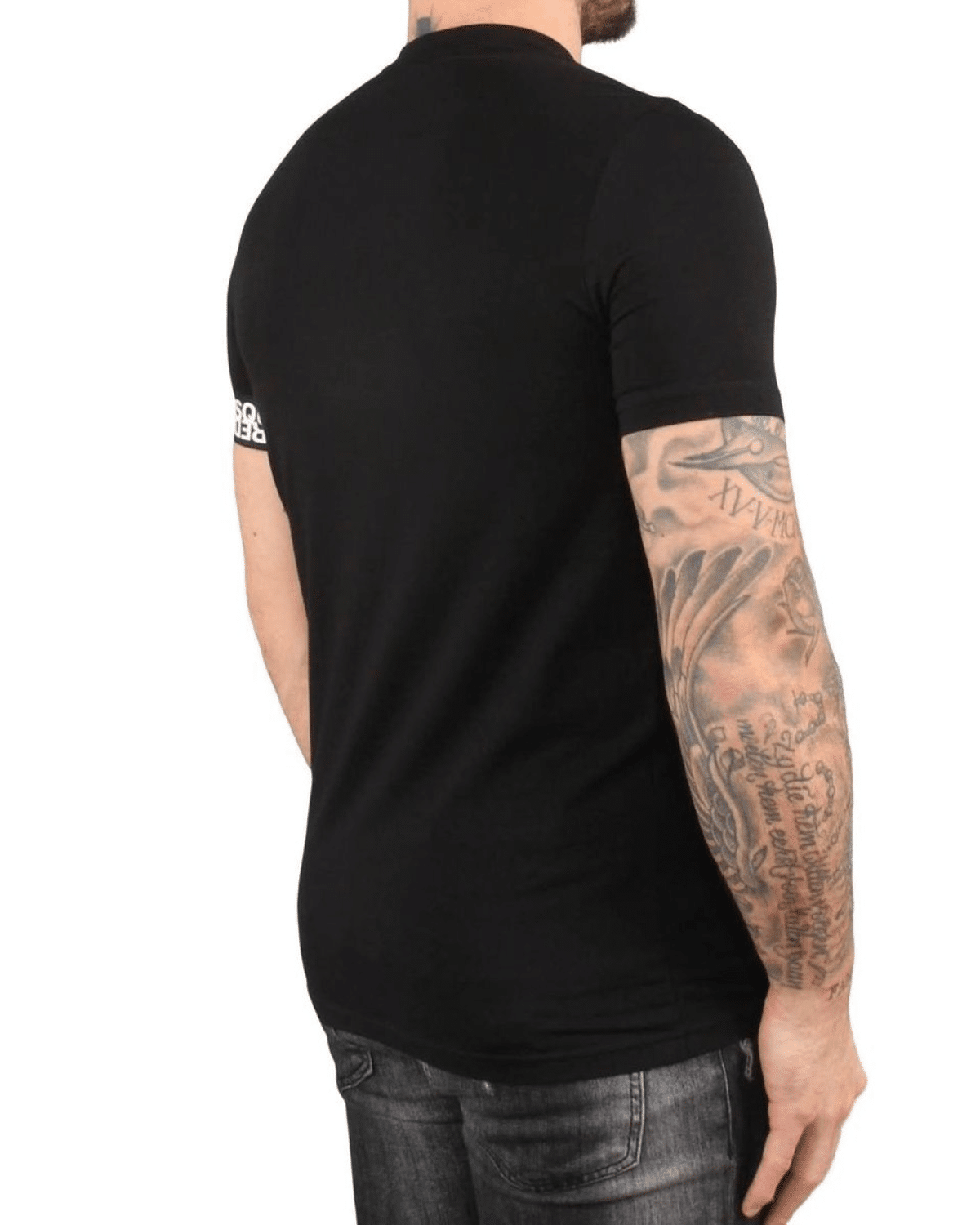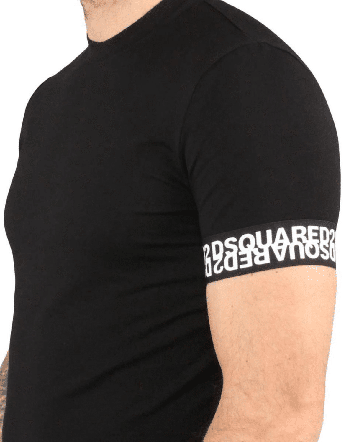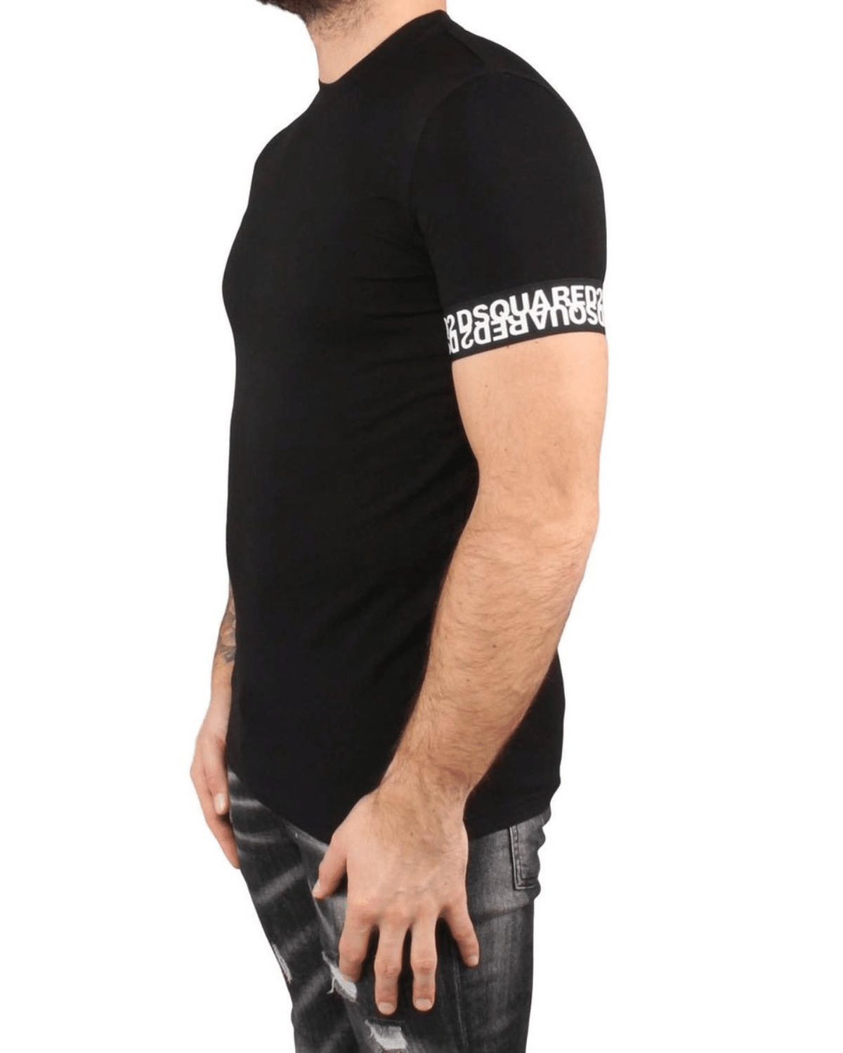 טי שירט שחורה בעיצוב ייחודי מבית DSQUARED2 המשלבת מראה מודרני עם אמירה אופנתית חזקה.