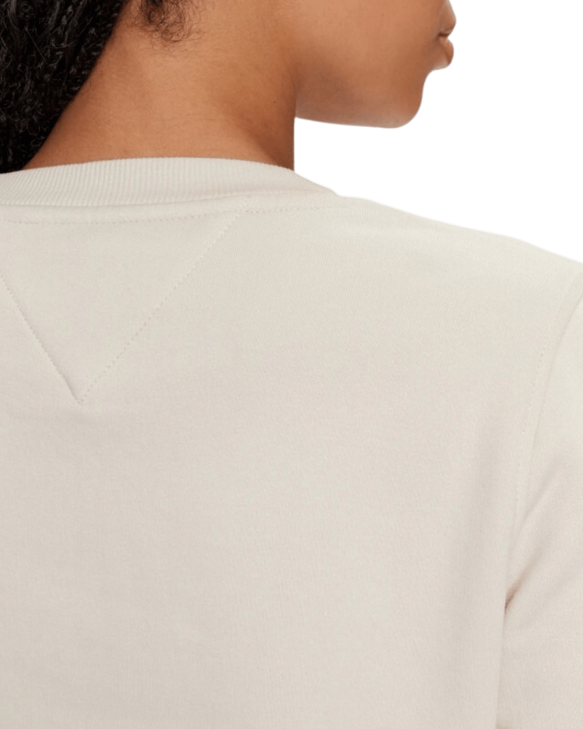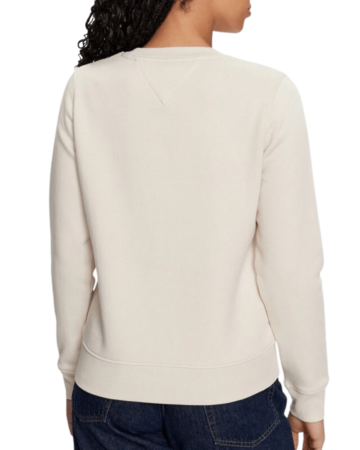 קו הצווארון העגול הקלאסי מוסיף מגע נצחי, בעוד שדגל החתימה של טומי ג'ינס רקום על החזה מדגיש את תשומת הלב של המותג לפרטים הקטנים.