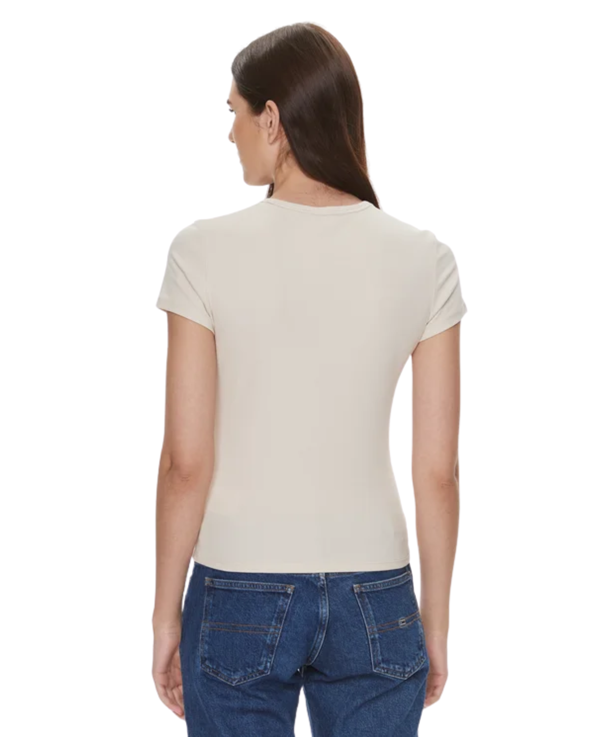 חולצת קז'ואל קצרה לנשים בגוון בז'-שמנת עדין, המשלבת מראה אלגנטי עם נוחות מקסימלית.