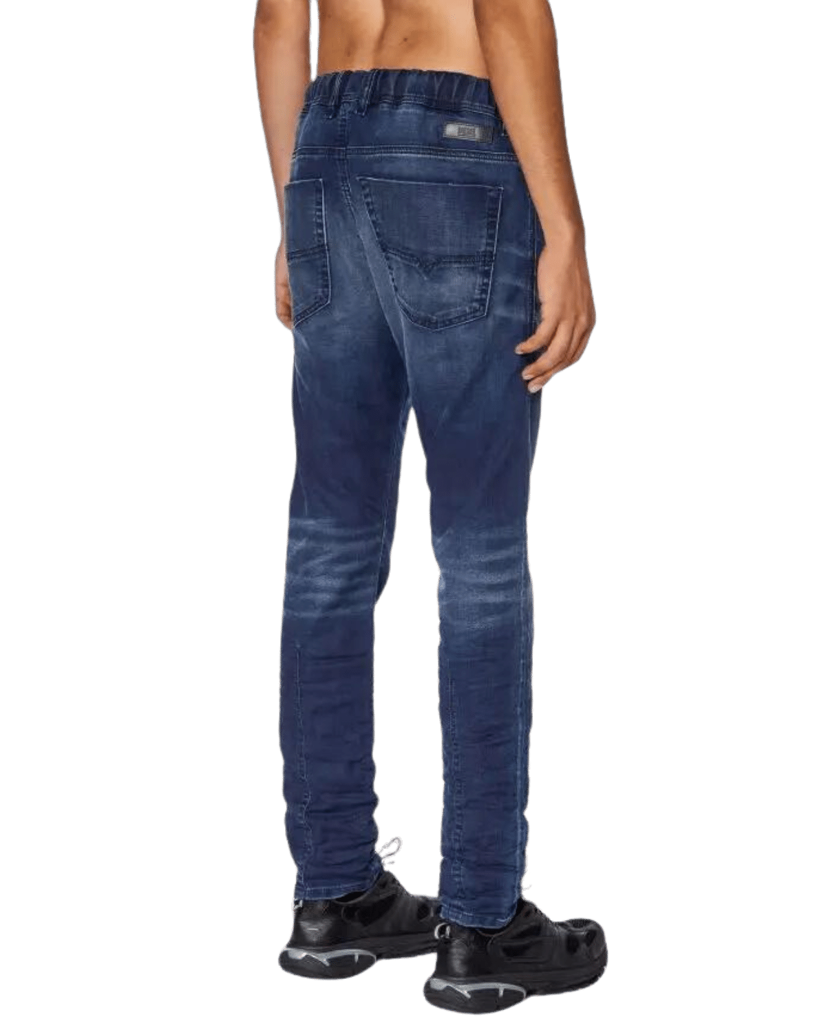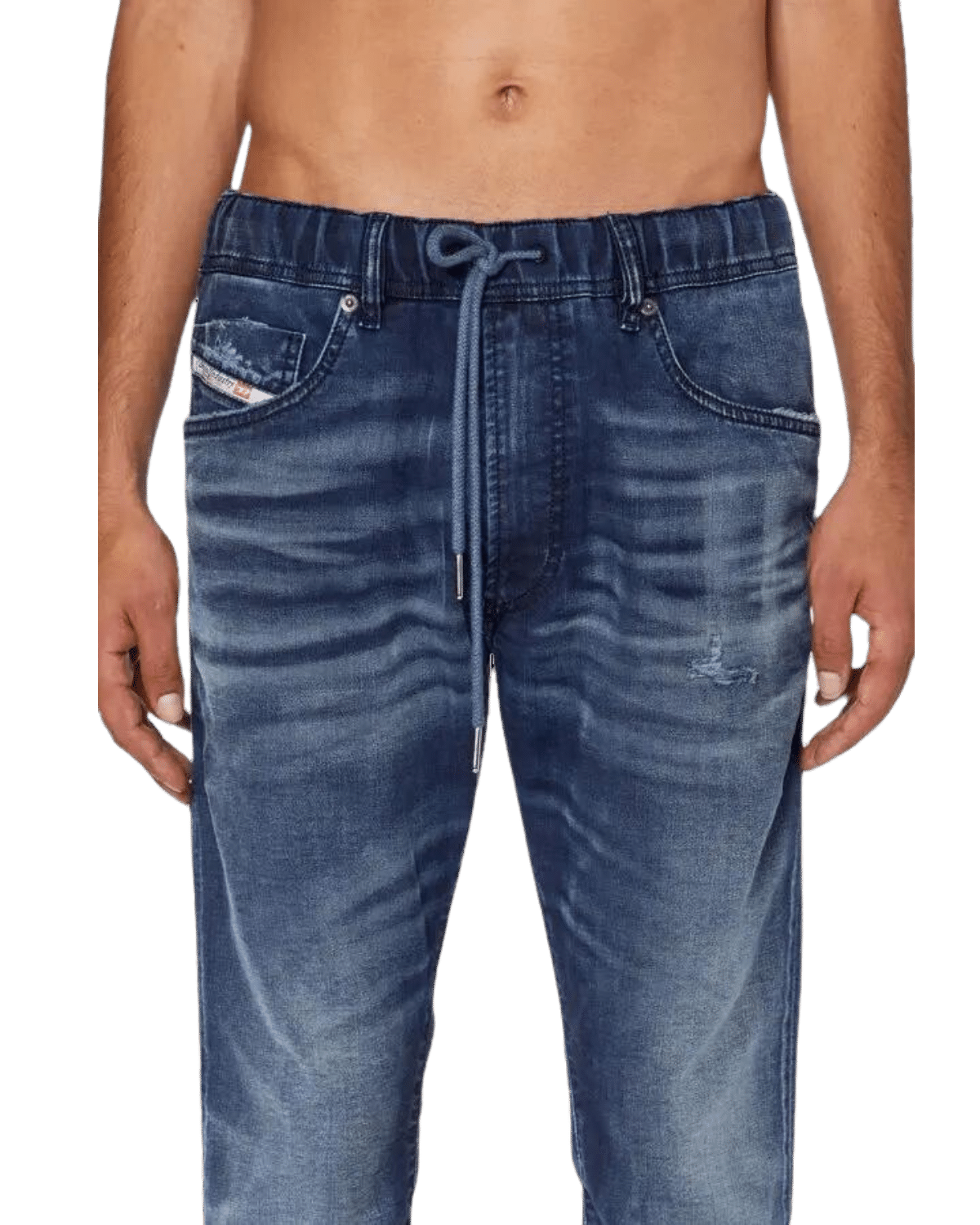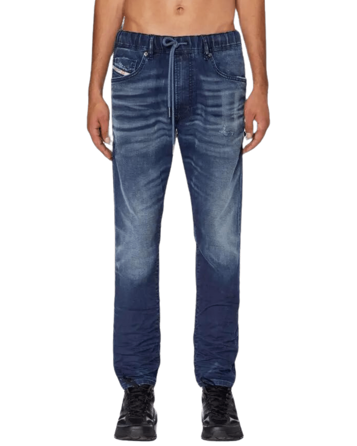 ג׳ינס ג׳וג מבד נעים ונוח בצבע כחול כהה ובגזרה ישרה עם הצרה קלה בתחתית. לג׳ינס גומי במותן ושרוך קשירה